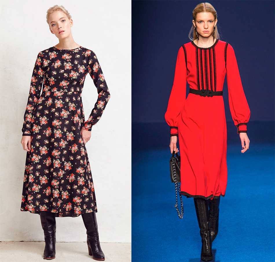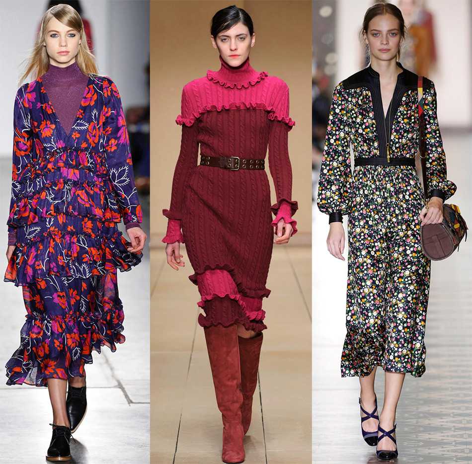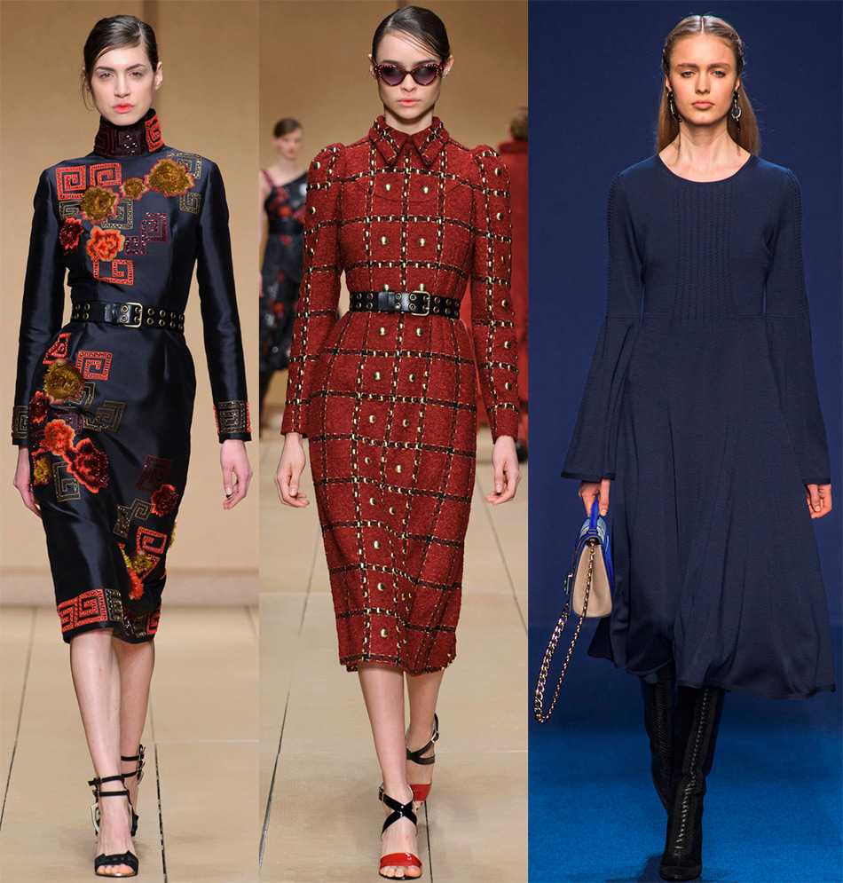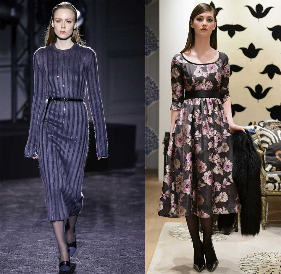 В моде жатые ткани, кружево в виде отделки, контрастные пояса, V-образный вырез горловины и рукав-фонарик. Необязательно, чтобы все эти элементы присутствовали в одном наряде. Главное, чтобы платье было комфортным и хорошо сидело по фигуре, а сделать образ стильным помогут соответствующие аксессуары и украшения.