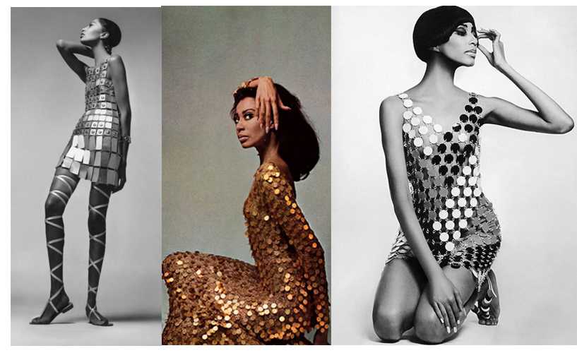 Смелым шагом было и то, что Рабан приглашает для дефиле модель с темной кожей – Дониэль Луна. Дэвид Бейли в 1966-м году фотографирует ее для Vogue.