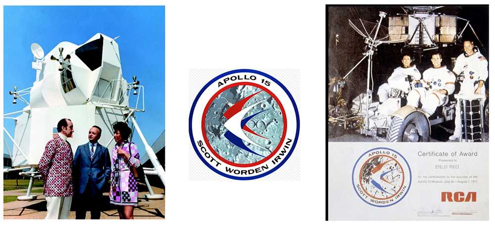 Влияние Пуччи распространилось на Луну. Он предложил мотив трех птиц для дизайна нашивки миссии Apollo 15, хотя, по словам астронавта Apollo и отставного ВВС США, команда заменила его синий и зеленый на более патриотичные красный, белый и синий. Полковник Аль Уорден на презентации «Аполлон-11: за кулисами» в Whalehead Club в Королле, штат Северная Каролина, 18 июля 2019 года.