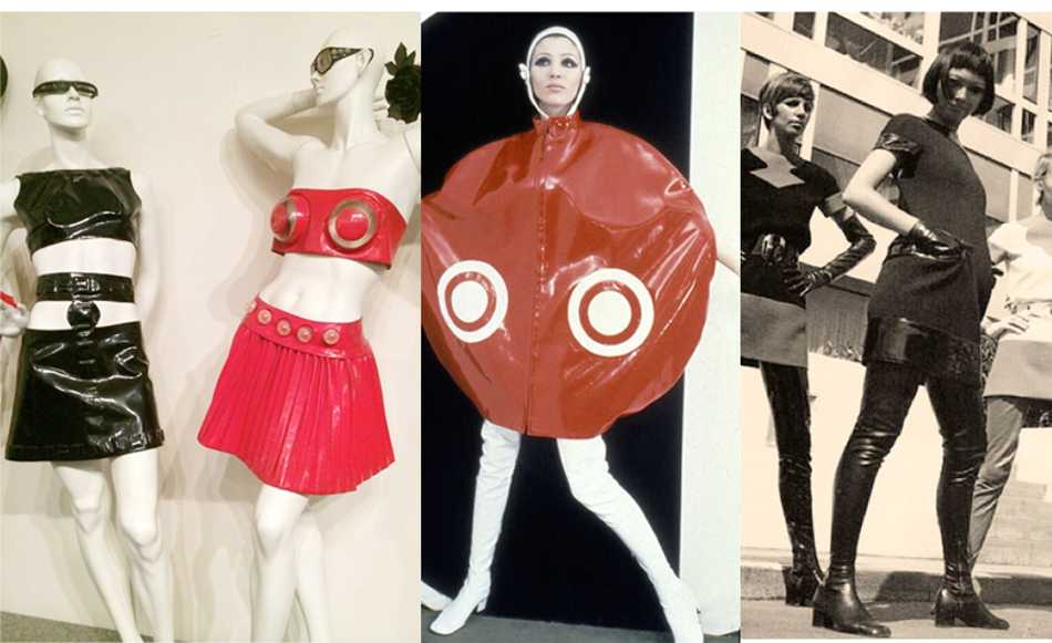 Еще один «творец будущего» — Пьер Карден. Коллекция из винила «Как заставить твоего парня вернуться?», плащ, скроенный по кругу, виниловые сапоги-чулки.