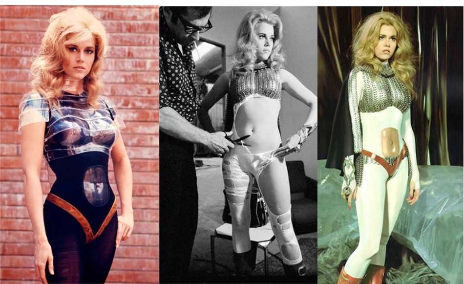 Любопытно, что рабановские эксперименты тут же были интерпретированы в кино. В 1968-м году выходит фильм Роже Вадима «Барбарелла». Релиз фильма звучал так: «Искательница сексуальных приключений Барбарелла путешествует по Вселенной. Она встречается с представителями рас и цивилизаций самой разнообразной внешности и несёт им всем любовь». Костюмы для Джейн Фонды делал Жак Фонтерей, по мотивам моделей Пако Рабана.
