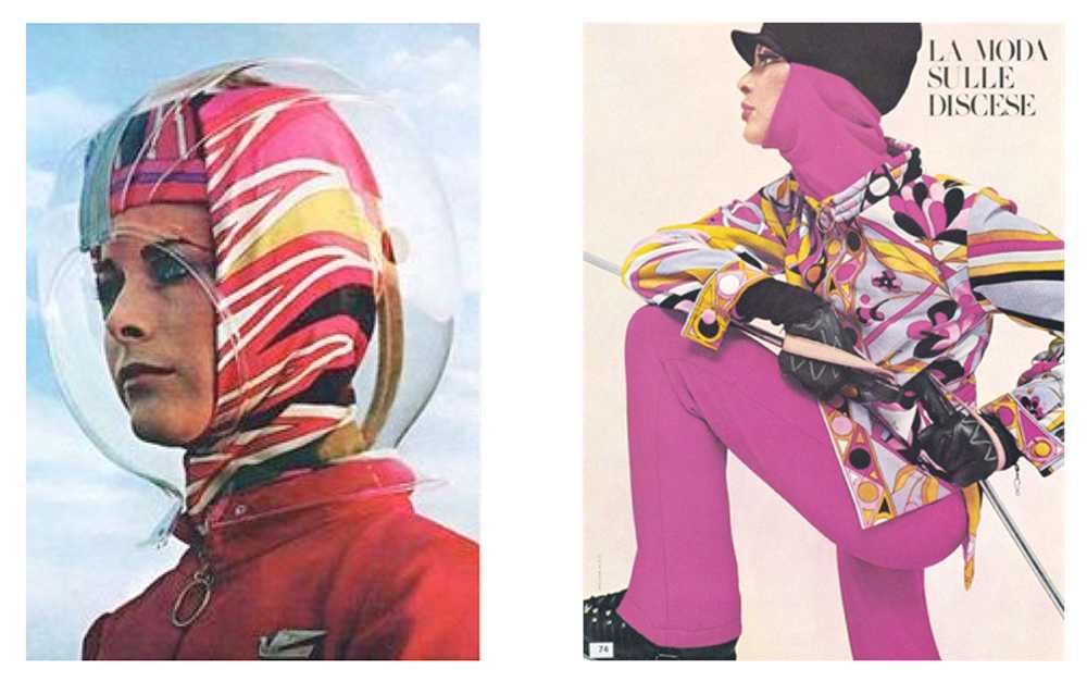 Первая одежда, разработанная Пуччи, предназначалась для лыжной команды Reed College