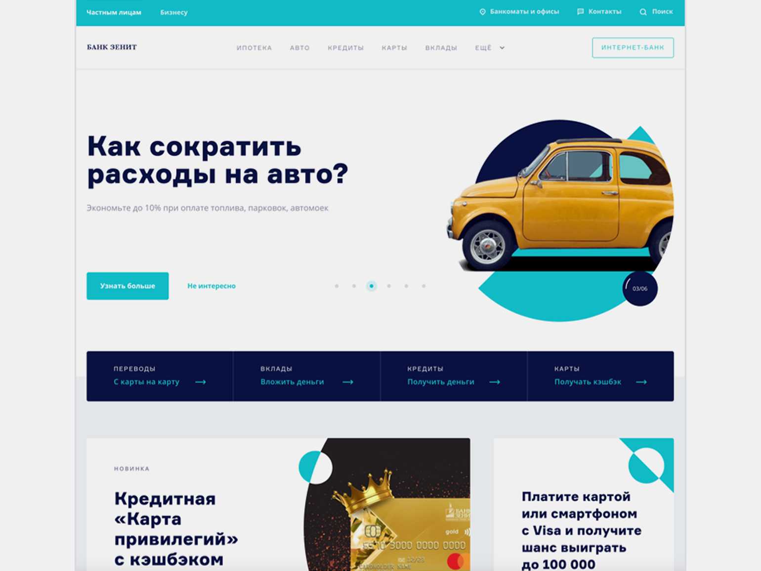 Оформление сайта банка «Зенит». Двухцветные круги — часть фирменного стиляИзображение: «Зенит» / дизайн компании AIC