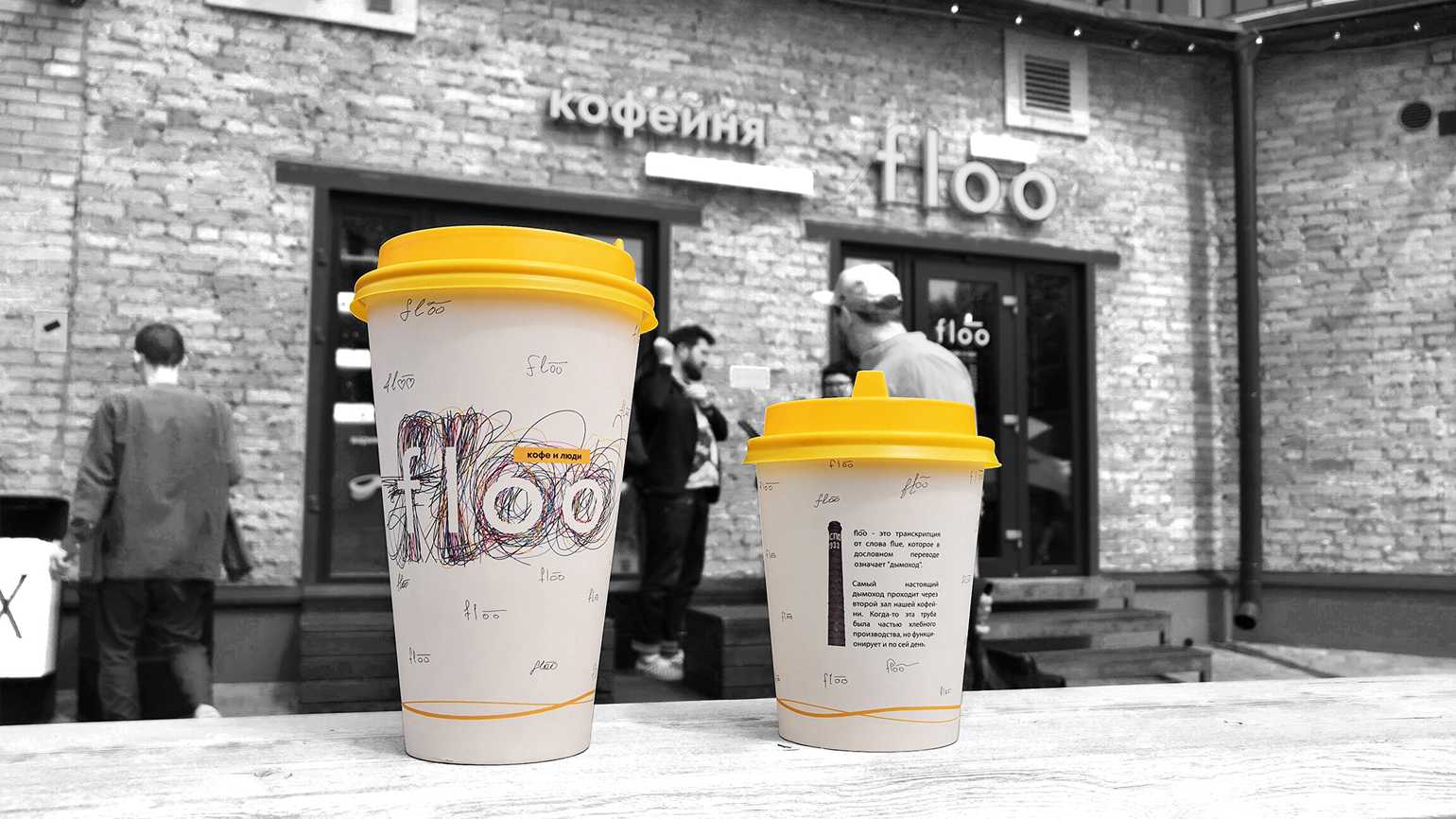 «Рукописный» логотип кофейни Floo на бумажном стакане. В основе идея о том, что каждый почерк и росчерк индивидуален и отражает характер человека, а разные характеры создают атмосферу кофейни. Автор — Omtoki SimonФото: Omtoki Simon / Behance