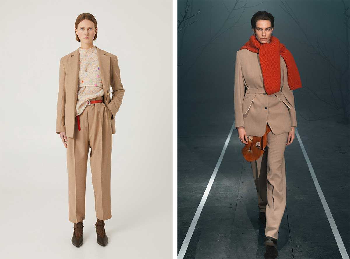 Что касается цветов, то в моде монохромные аутфиты, допускающие не только бежевую, серую и другую нейтральную палитру. Одежда может играть оттенками синего или вишневого, присущему стилю милитари — хаки, а также яркими тонами.