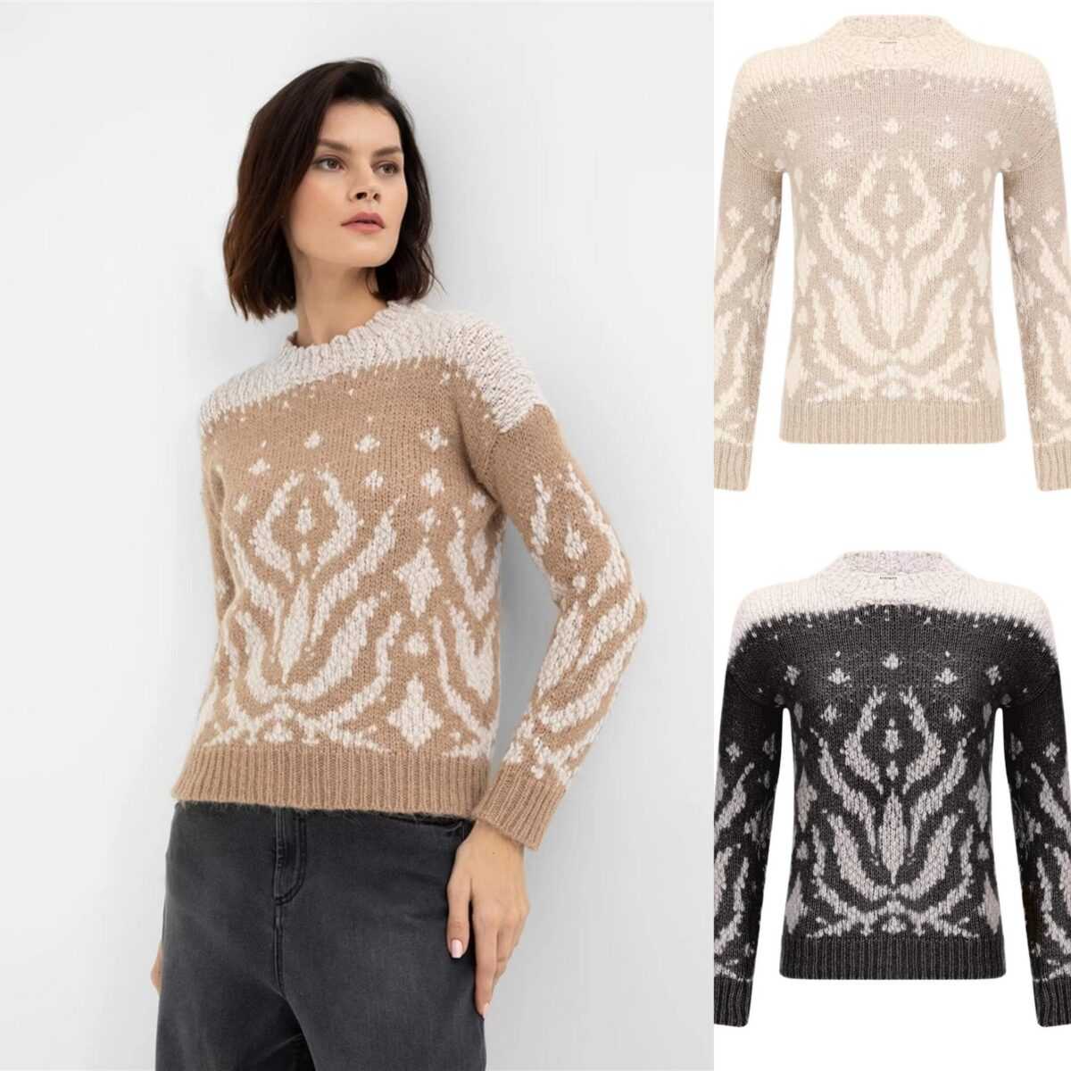 А вот эта модель от данного бренда мне понравилась уже гораздо больше! Особенно графитово-серый вариант. Интересный жаккардовый рисунок и сочетание пряжи с разной фактурой.