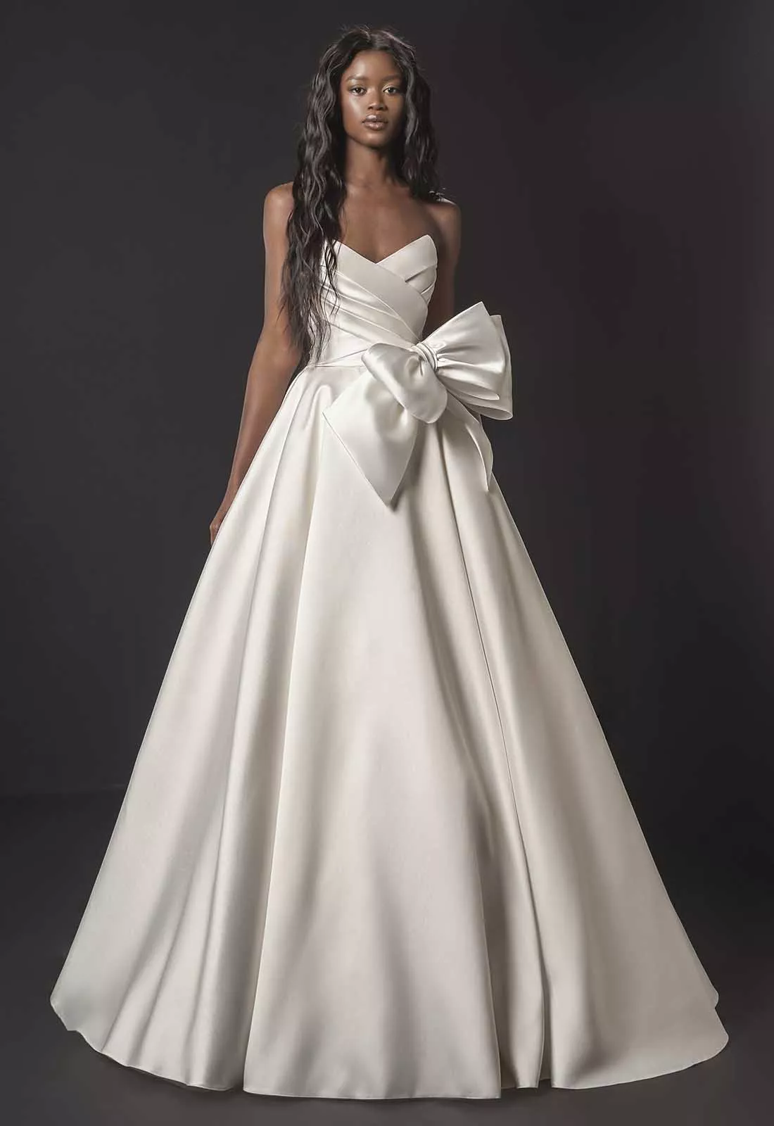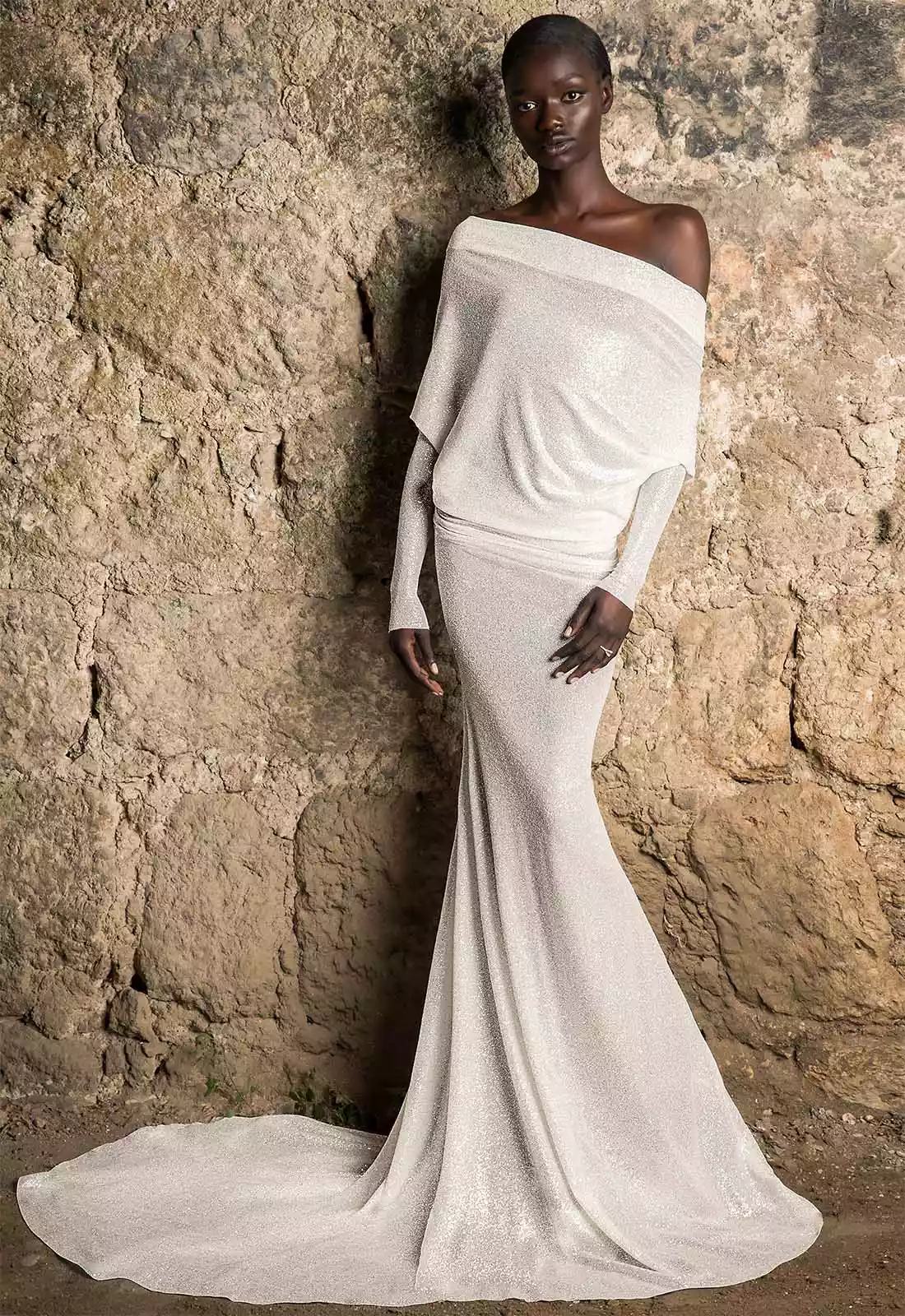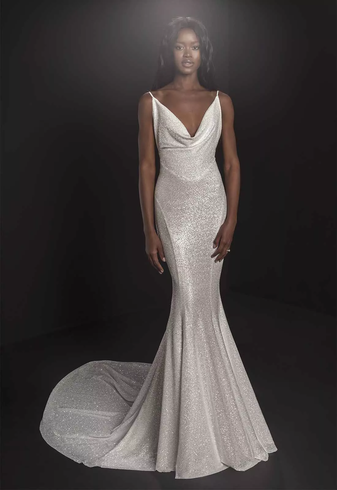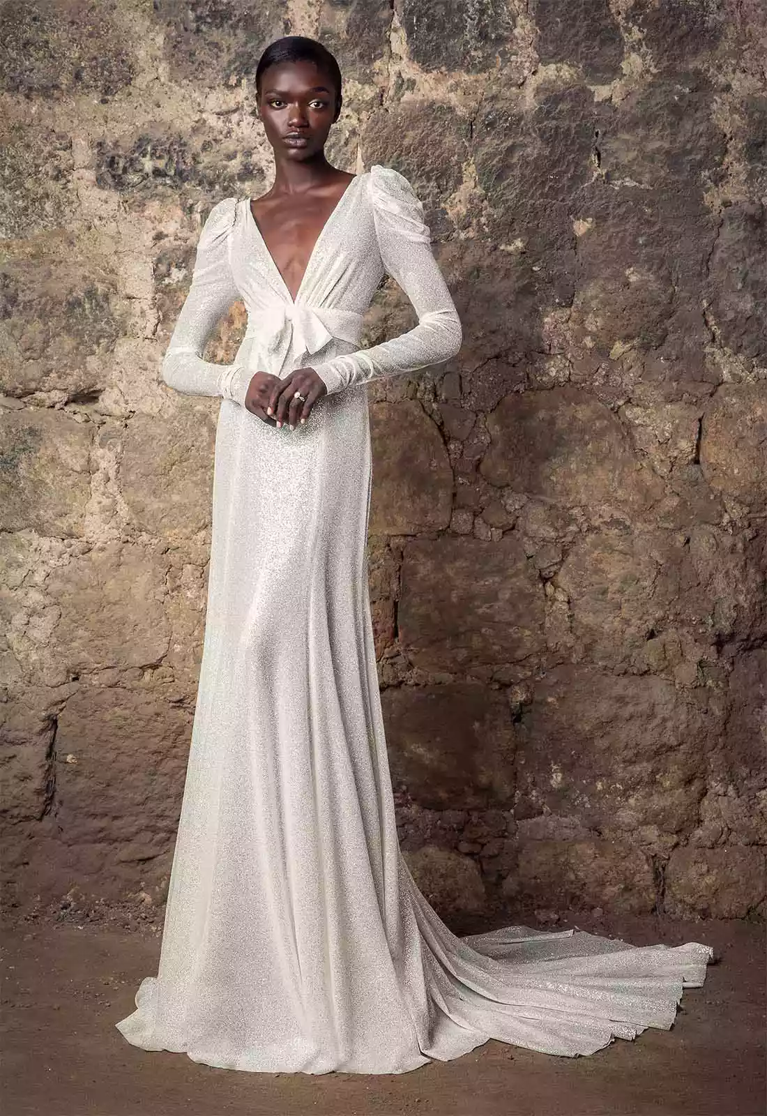 «These gowns are designed for today’s weddings; I created them to be admired from up close in all of their beautiful detail by your closest, most beloved friends and family rather than to be seen from the other side of a grand event hall,» says Tornai of her 2021 One couture collection. Ahead, see plenty of sparkles, lace, and fit-and-flare silhouettes.