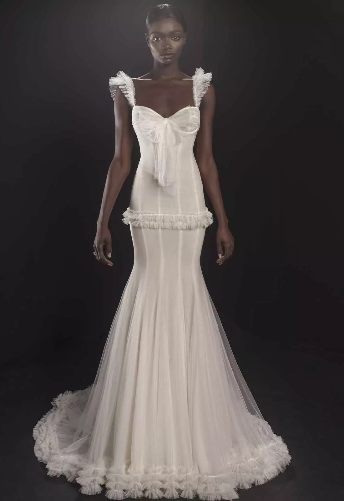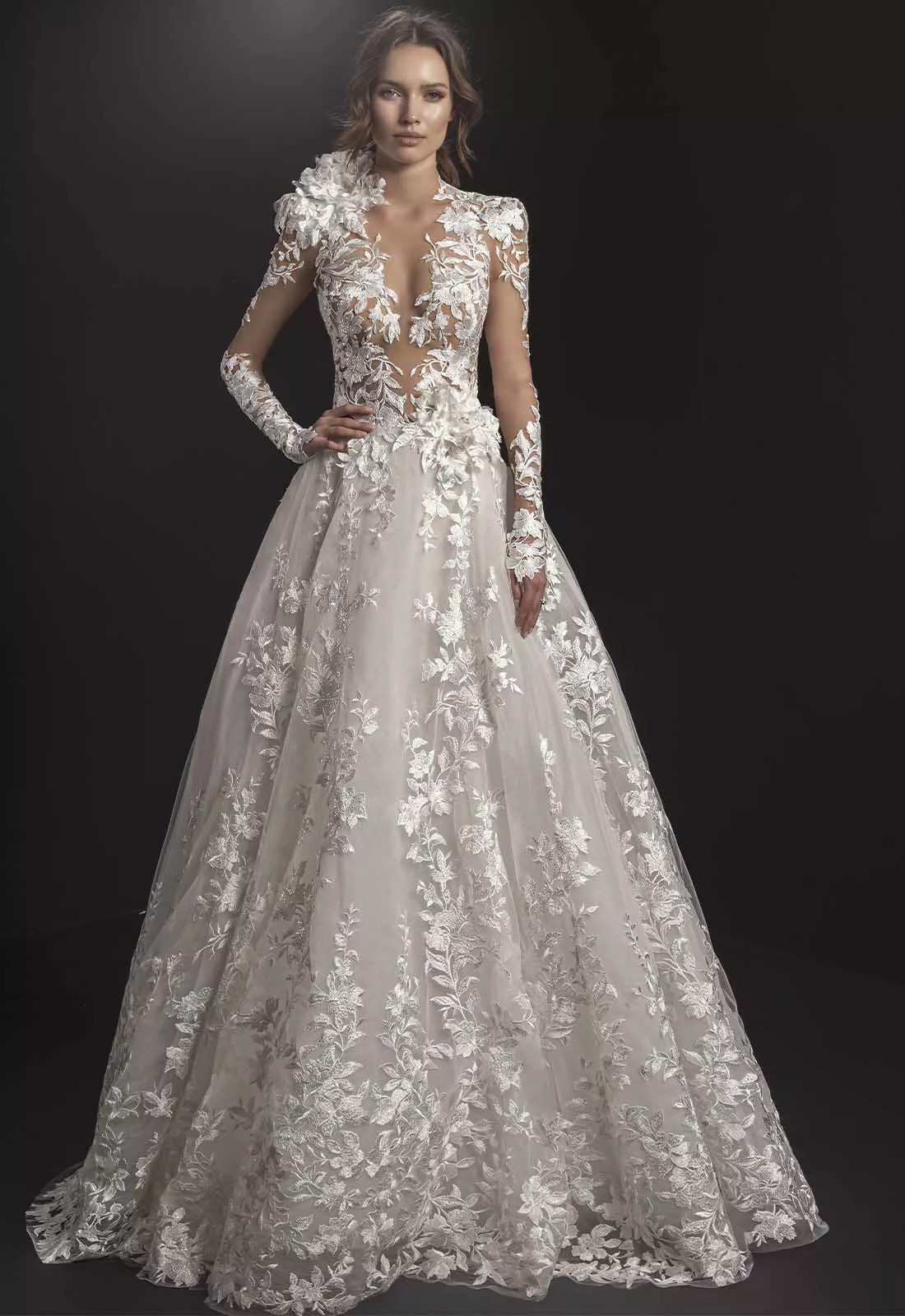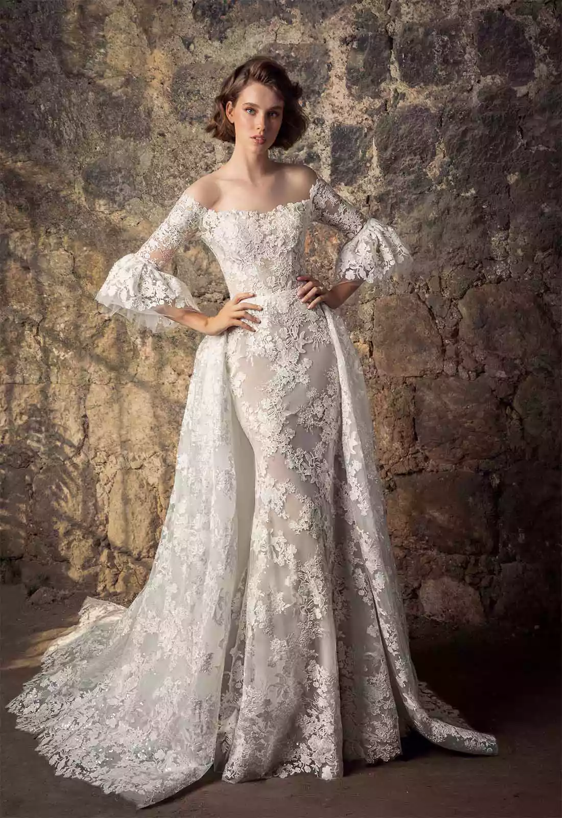 «These gowns are designed for today’s weddings; I created them to be admired from up close in all of their beautiful detail by your closest, most beloved friends and family rather than to be seen from the other side of a grand event hall,» says Tornai of her 2021 One couture collection. Ahead, see plenty of sparkles, lace, and fit-and-flare silhouettes.