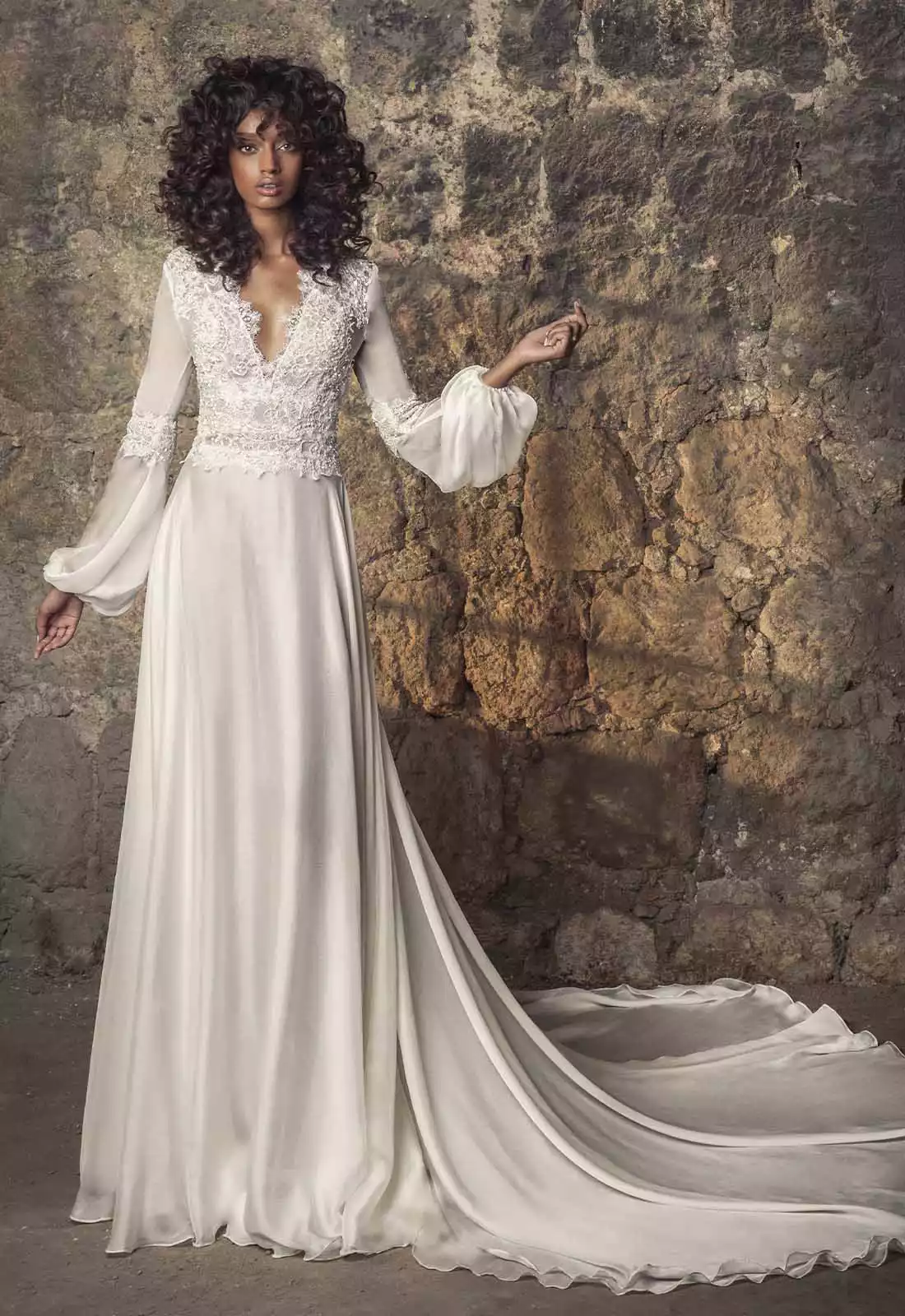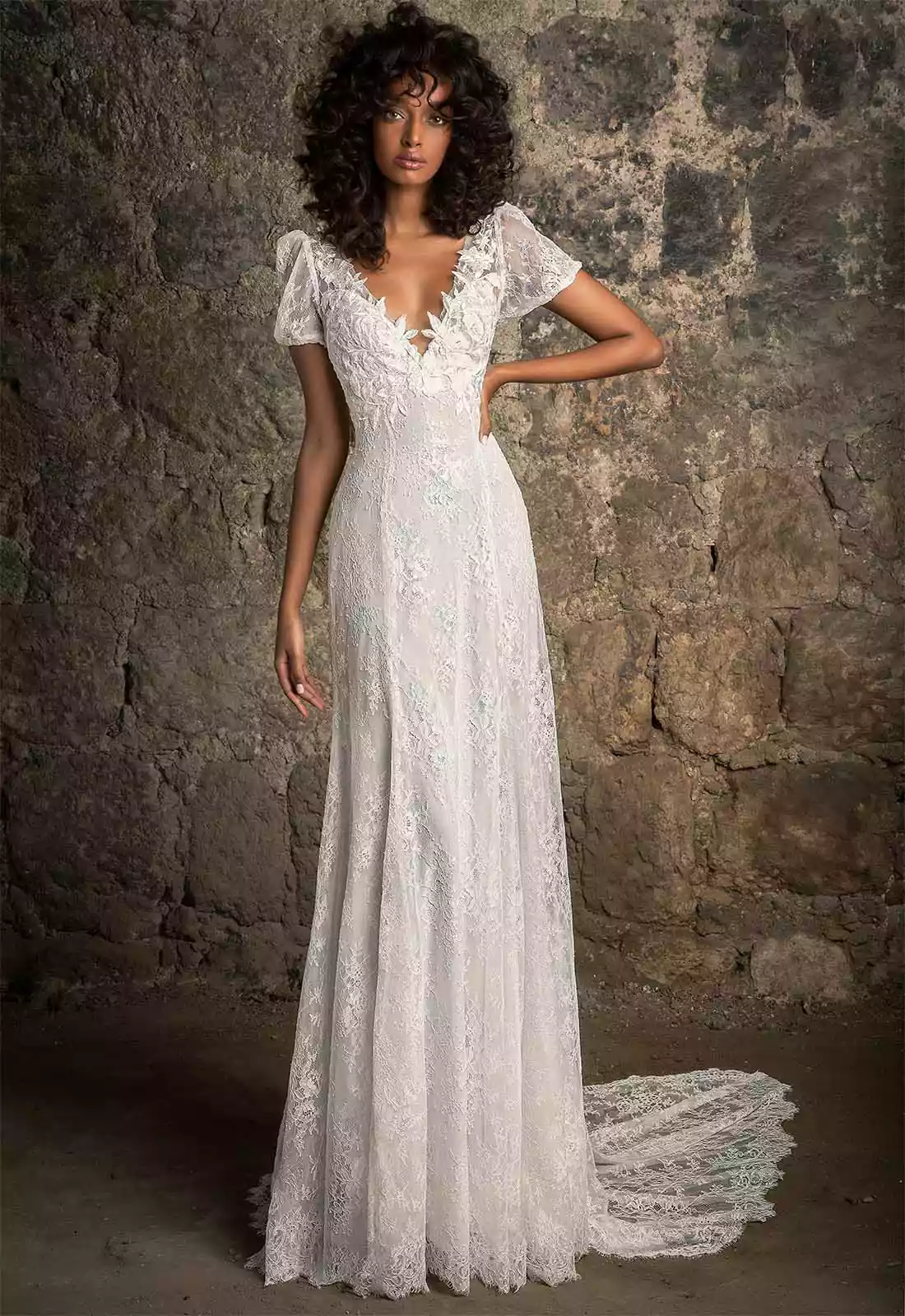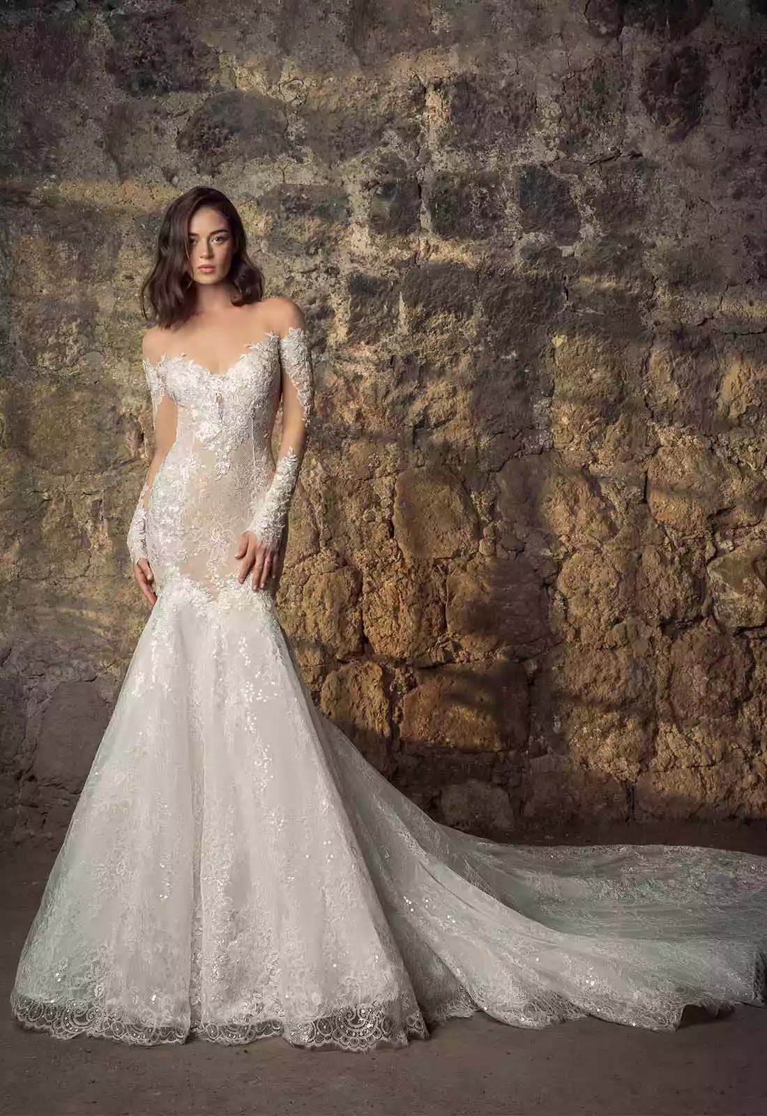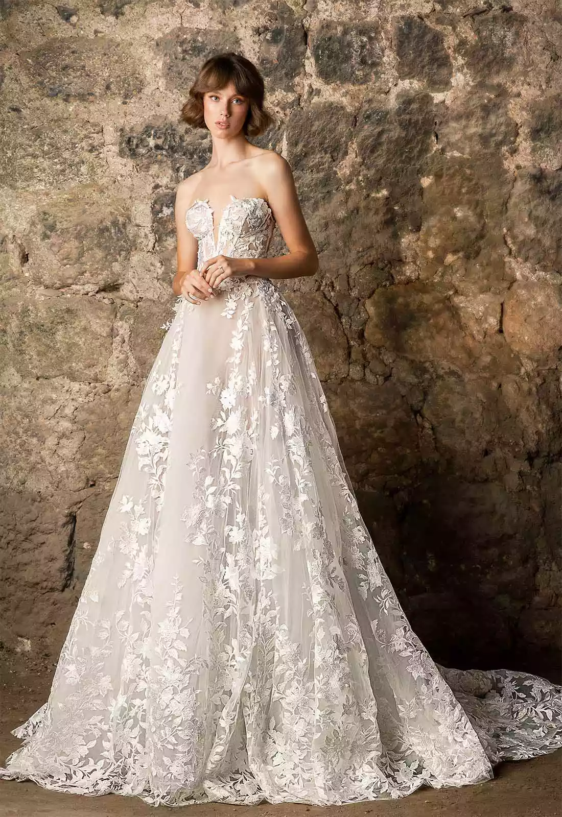 «These gowns are designed for today’s weddings; I created them to be admired from up close in all of their beautiful detail by your closest, most beloved friends and family rather than to be seen from the other side of a grand event hall,» says Tornai of her 2021 One couture collection. Ahead, see plenty of sparkles, lace, and fit-and-flare silhouettes.