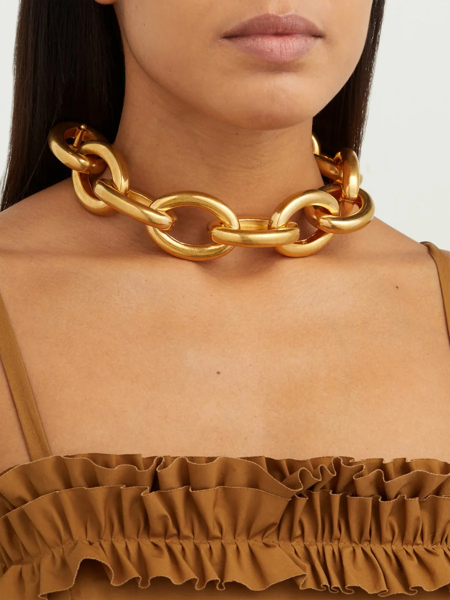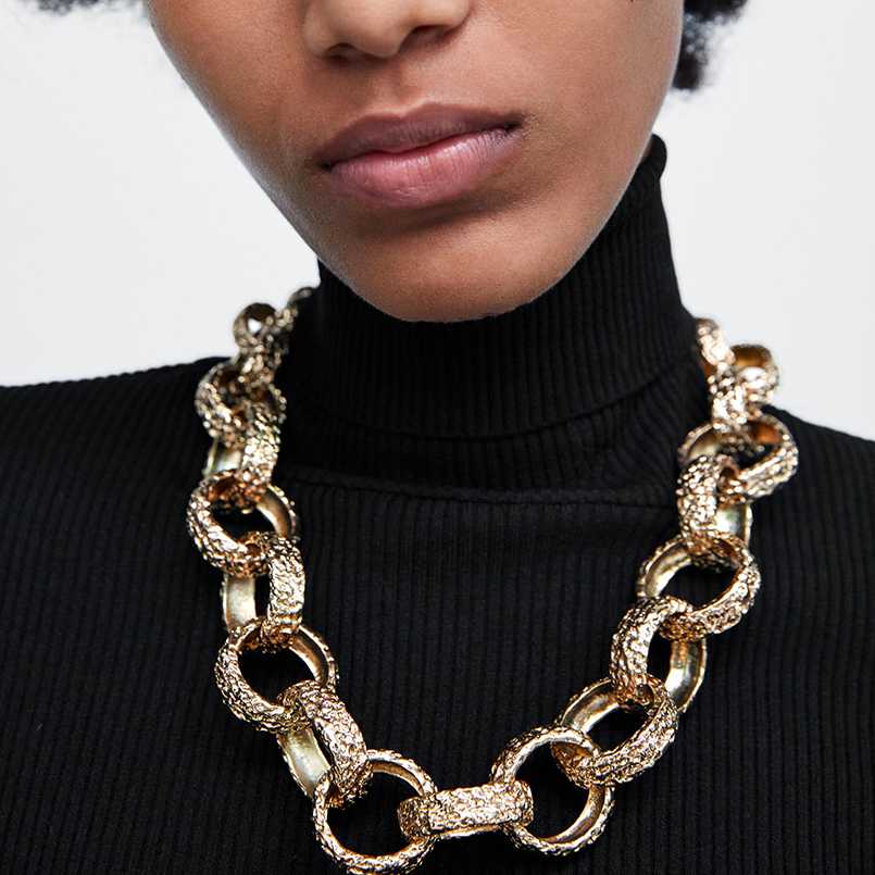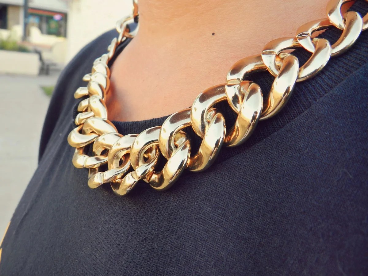 Чем крупнее звенья, тем лучше. В зависимости от телосложения вы можете выбрать чокер-цепочку или длинное ожерелье до пояса.
