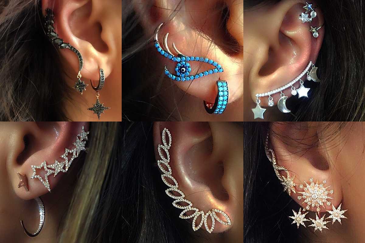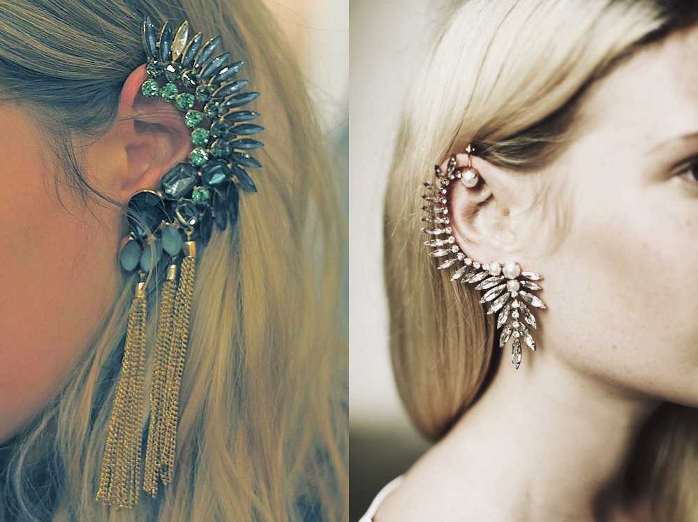 Не сдают своих позиций и элегантные серьги-каффы: они незаменимы при создании особо романтичных и женственных луков. Каффы подчеркнут не только изящество нежных ушек, но и красоту лица, прически и всего туалета.