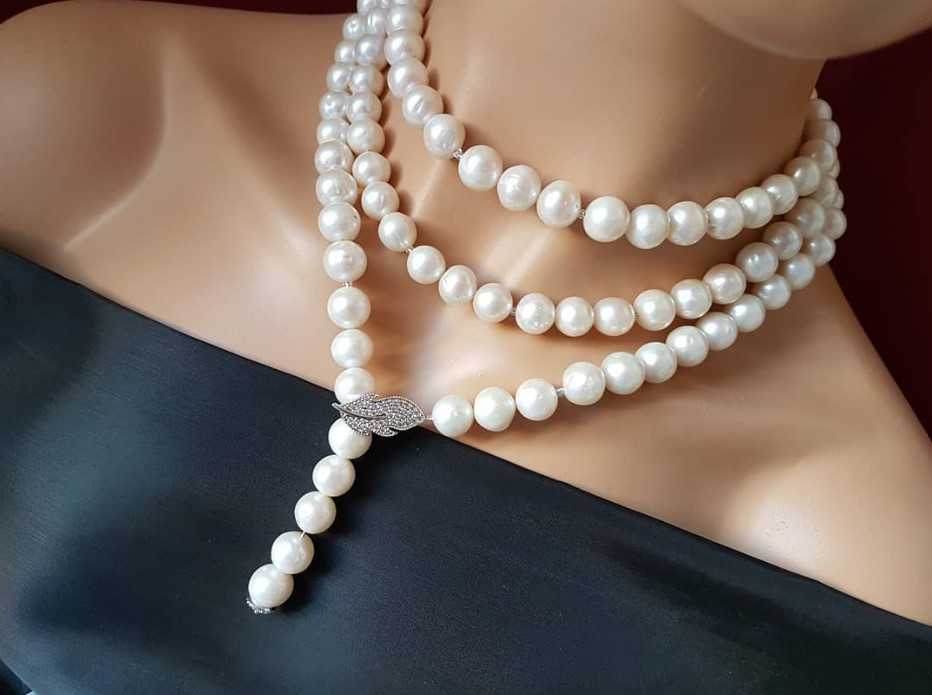 - В 2021 году в моде жемчужные украшения, сделанные из нескольких нитей. Причем нити могут быть совершенно разной длины. Это позволит создавать более интересные и объемные формы.