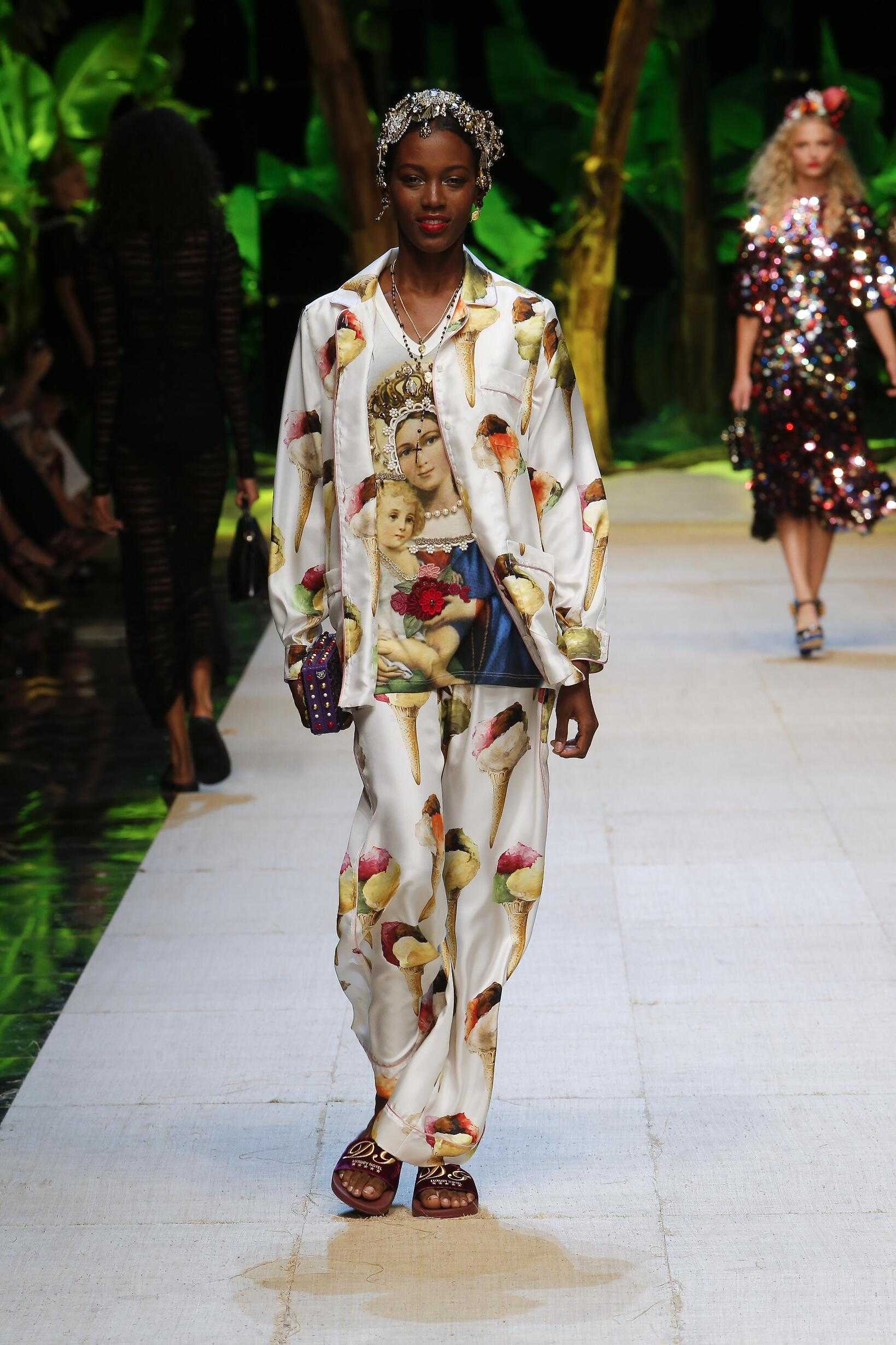 Шоу Дольче и Габбана выгодно отличалось от остальных показов яркостью, сочностью, страстью, характерным эпатажем. В то время, как многие другие дома выбрали в качестве основного белый цвет как символ надежды и веры, итальянский бренд пошел своим путем