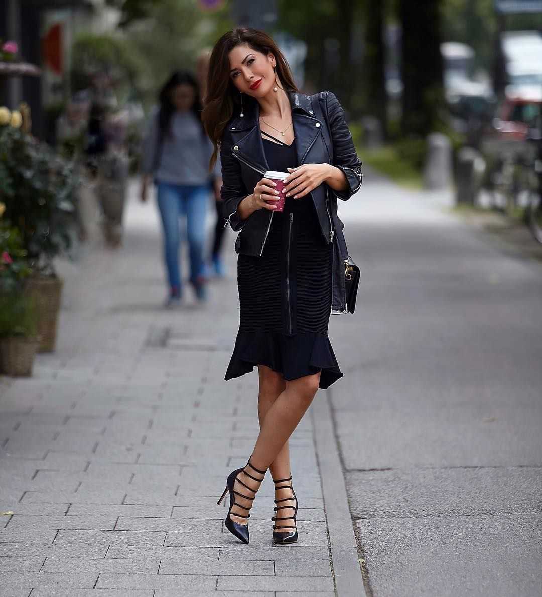 Стильным считается образ, в котором кожаная верхняя одежда объединена с кожаной юбкой или брюками. Остается дополнить лук театральными высокими перчатками – и вы на вершине успеха.