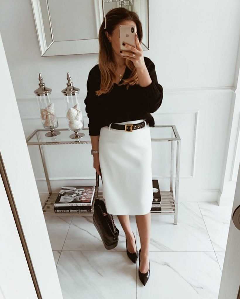 Базовые вещи для модниц на зиму 2020 содержат много классических фасонов, но в современных текстурах и материалах. Особенно актуальной и универсальной стала юбка-карандаш длиной миди из эко-кожи. Сочетать её можно с джемпером, рубашкой, жилеткой или гольфом.