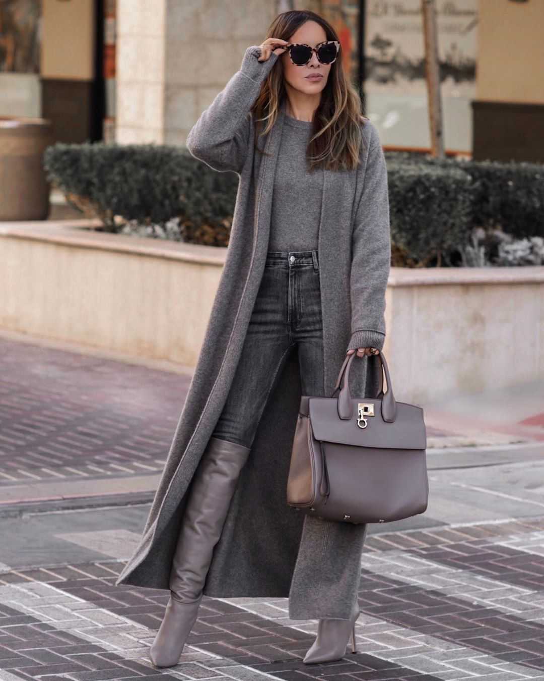 Обязательны для женского гардероба на зиму и монотонные лонгсливы и гольфы. Их должно быть, как рубашек у мужчин, то есть достаточно, чтобы менять каждый день в течение недели. Среди расцветок самыми востребованными будут черный, молочный, серый, пыльно-розовый и любые оттенки охровой, карамельной и коричневой гаммы. Последние близки к коже, хорошо её оттеняют и способны сделать лук визуально теплым и приятным.