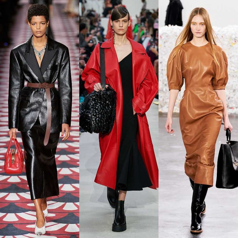 Вдохновляясь стилем Тринити из «Матрицы», Женщины-кошки и других супергероинь, дизайнеры не сговариваясь делают кожу главным материалом сезона осень-зима 2020. Начиная с аксессуаров и заканчивая гранжевыми total-look образами, она становится основой для разных стилей и едва ли не самым важным элементом гардероба каждой модницы. Никаких ограничений по цветам: брутальный черный, элегантный терракотовый или броский красный – стилисты предсказывают: в следующих сезонах кожа станет новым денимом.