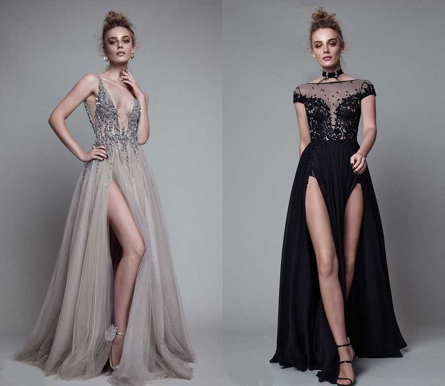 Платье в пол с разрезом от бедра. Классическим выбором считаются модели с высоким разрезом с одного бока. Такие платья при ходьбе стильно развеваются даже в прямом фасоне, подчеркивая летящую походку. Как правило, подобный вариант представлен в закрытых моделях без других элементов сексуальности.