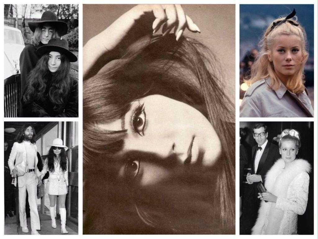 В 60-е немало девушек мечтали выглядеть как Катрин Денёв. Прекрасное чувство стиля сделало ее музой знаменитого кутюрье Ив Сен Лорана. Певица Шер использовала в своих нарядах стиль хиппи. А спутница жизни участника «Битлз» Джона Леннона Йоко. Она демонстрировала аутентичные ансамбли в белом цвете: мини платья, высокие сапоги и широкополые шляпы.