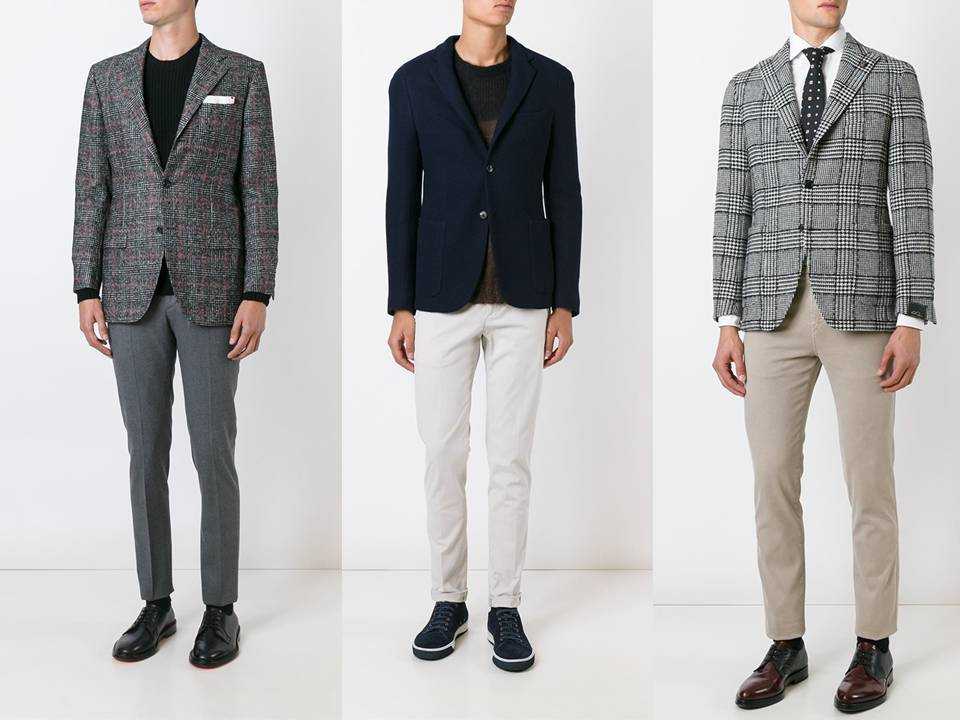 Это самый распространенный вид casual-пиджака вы можете носить и с классическими брюками, и со штанами из хлопка (продавцы в мужских магазинах любят их называть чиносами), и с джинсами.