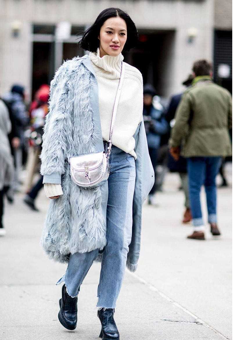 Если у вас полная фигура, выбирайте короткий искусственный мех, желательно темных тонов. Длина должна доходить до линии бедер, благодаря чему вы подчеркнете линию талии и скроете недостатки. В свою очередь, для стройных и высоких женщин наиболее уместны более длинные фасоны из искусственного меха. Высокие каблуки отлично подойдут к узким брюкам и приталенной юбке, при этом ваш силуэт сохранит правильные пропорции.