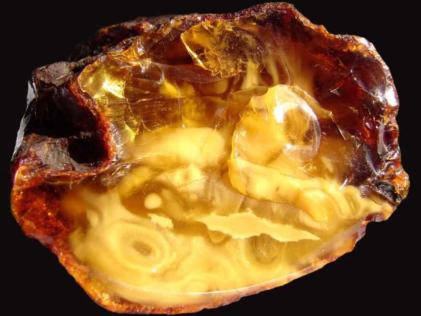 Еще одна разновидность называется слоистой. Янтарь такого рода обычно белого цвета, но слои отличаются разными оттенками. Ценность камней зависит от редкости и любой из них может стать коллекционным экземпляром, единственным в своем роде. Но инклюзы с останками насекомых или ископаемых растений всегда в цене. Подобные шедевры собрал мексиканский музей, в котором их насчитывается уже более 10 тысяч.