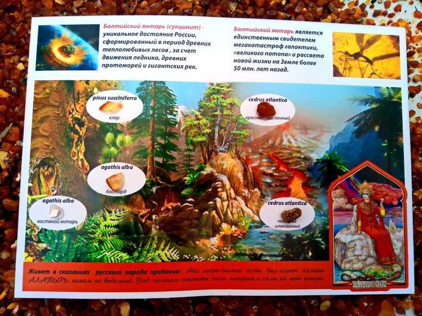 Настоящая природа камня была открыта совсем недавно, и выяснилось, что жители Эллады были по-своему правы, рассказывая легенды о плачущих солнечными слезами деревьях. Драгоценный янтарь оказался древесной смолой, пролежавшей в недрах Земли миллионы лет. И именно этим объяснятся находки удивительного по красоте самоцвета и в сибирской тайге, и на Карибских островах, и на побережье Балтийского моря, и даже в Африке, откуда везли когда-то драгоценный электрон в Древнюю Грецию и Римскую империю.