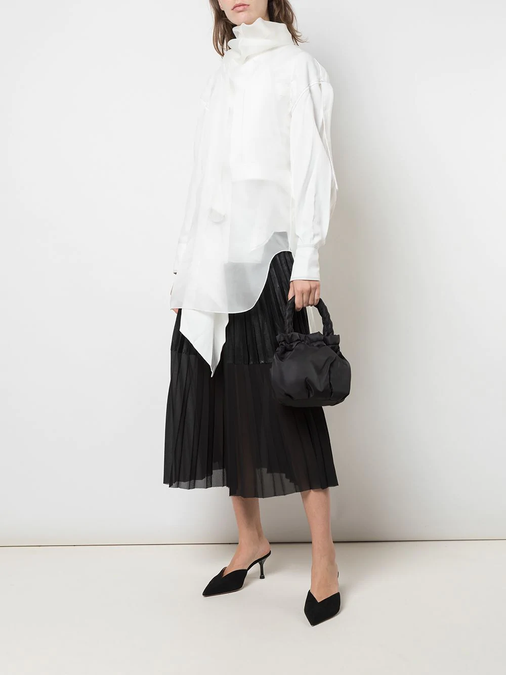 Женственные и изящные блузки для деловых и лаконичных look’ов продемонстрированы с воротником, воротником-стойкой либо V-вырезом, длинным рукавом или же без него.