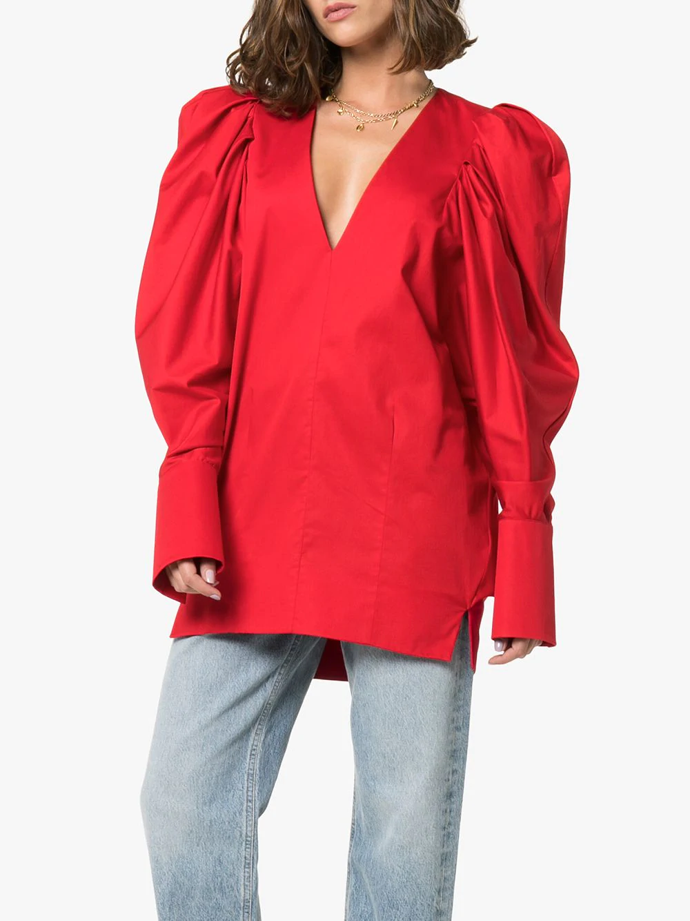 - Необычное направление этого сезона — сочетание мужского и женского стиля, которые позволяют получить модели простого рубашечного кроя с рукавами-фонариками.