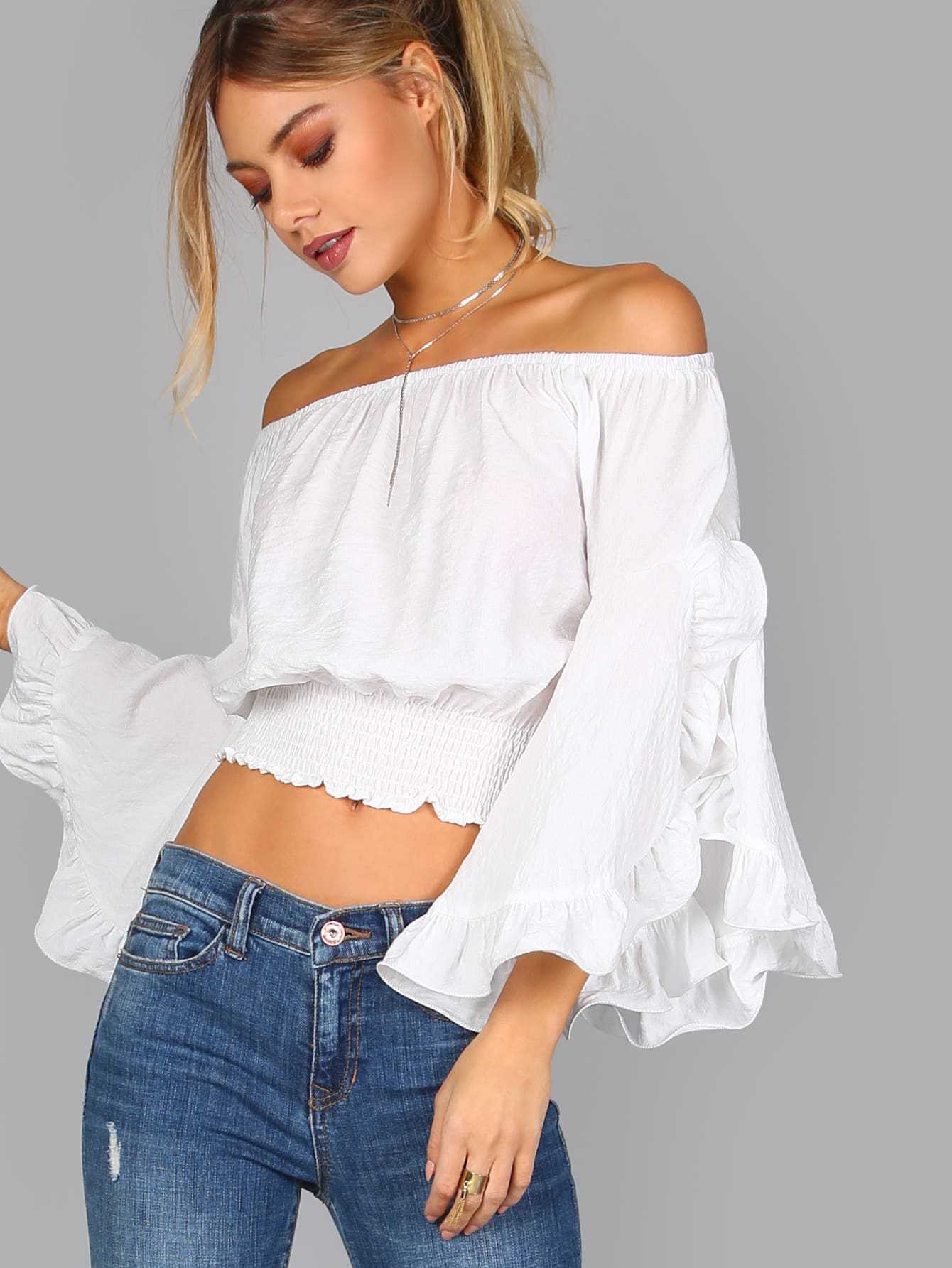 Модные блузы с обнаженными плечами 2022: любимый тренд сезона фото-новинки