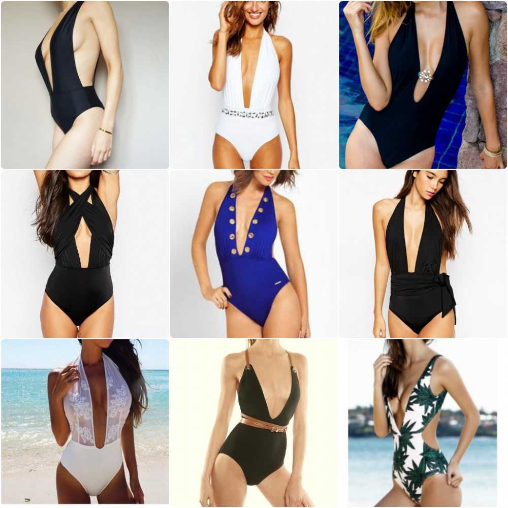 . Визуально сузить плечи помогут купальники с глубоким V-образным вырезом.