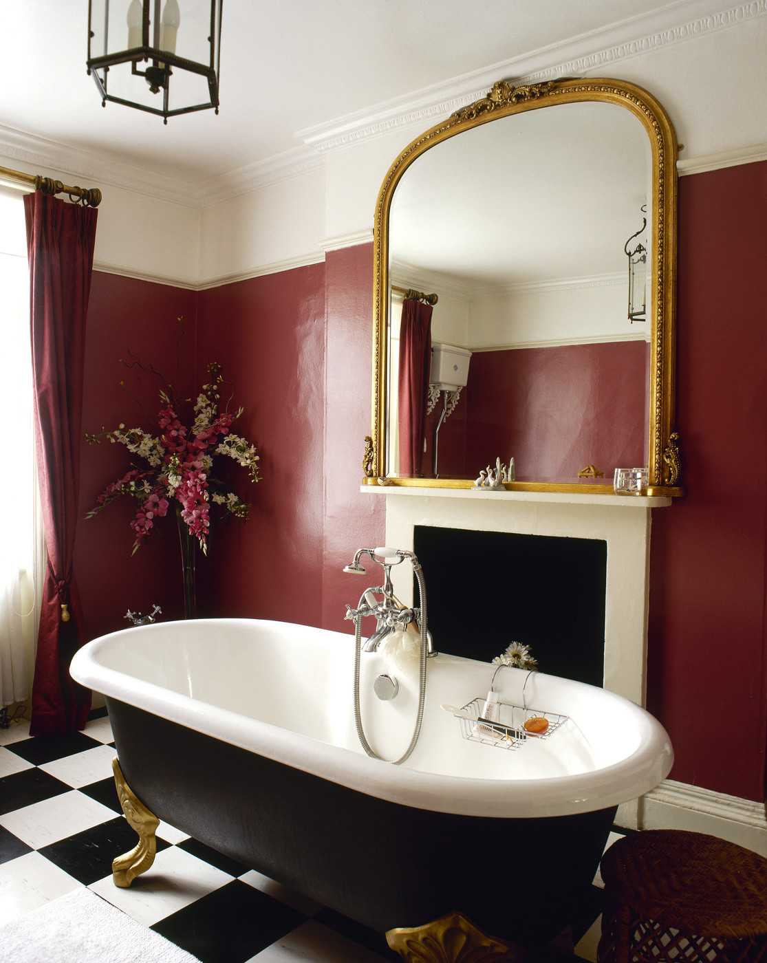 В ванной. Если стоит вопрос с чем сочетать марсала в ванной комнате, однозначно с природными материалами
