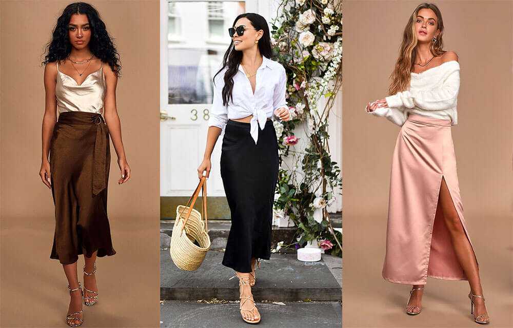 Как носить длинную, миди и мини юбку из атласа