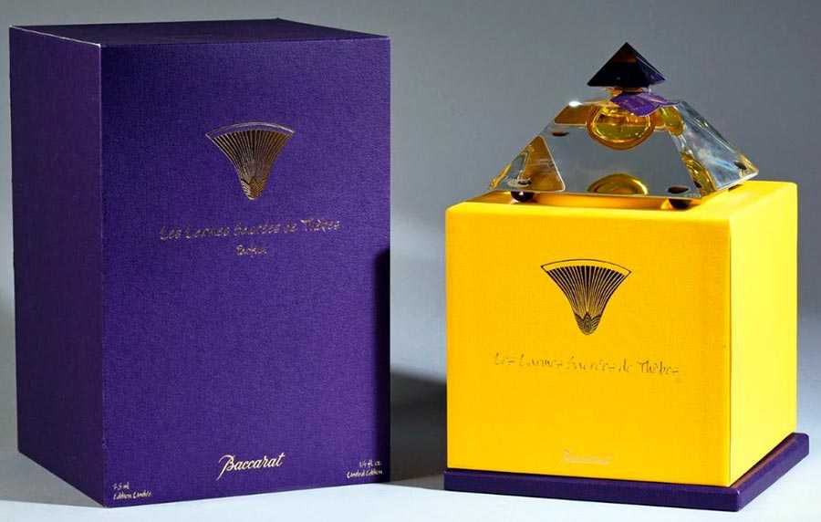 Следующее место занимает аромат от бренда Baccarat, который специализируется на производстве изделий из натурального горного хрусталя. В конце 90-х годов разработчики марки решили выпустить духи во флаконе их же собственного производства. Название аромата переводится как «Корона Фив» и полностью соответствуют названию этого города в Древнем Египте — сердца торговли пряностями. Главные слышимые ноты — мирра и ладан, но запах вовсе не «церковный» и не тяжелый, он обволакивает теплотой и уютом.