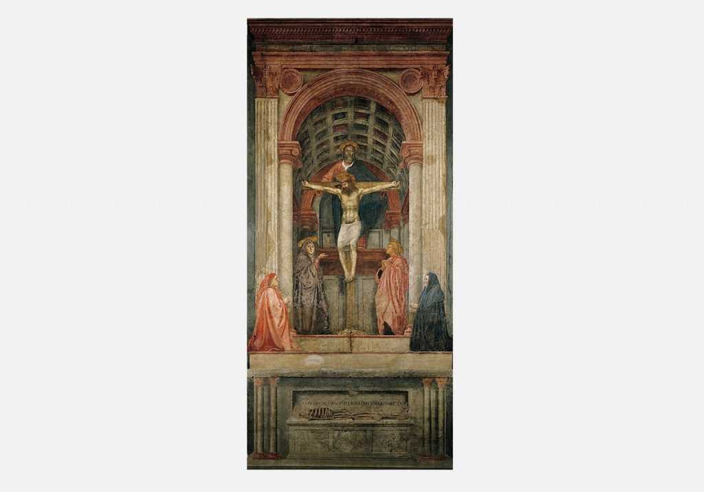 Кстати говоря, Мазаччо впервые придумал изображать персонажей твердо стоящими на земле; у его предшественников они обычно стояли на цыпочках или висели в пространстве.