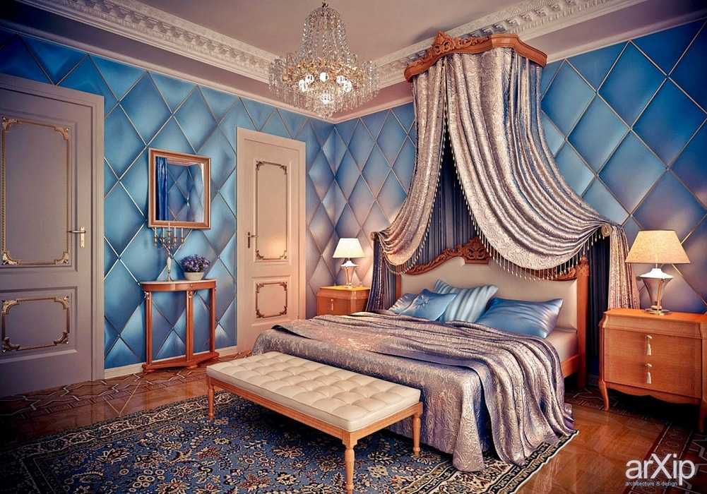 Кровати – величественные сооружения с колоннами, массивным изголовьем, балдахином.