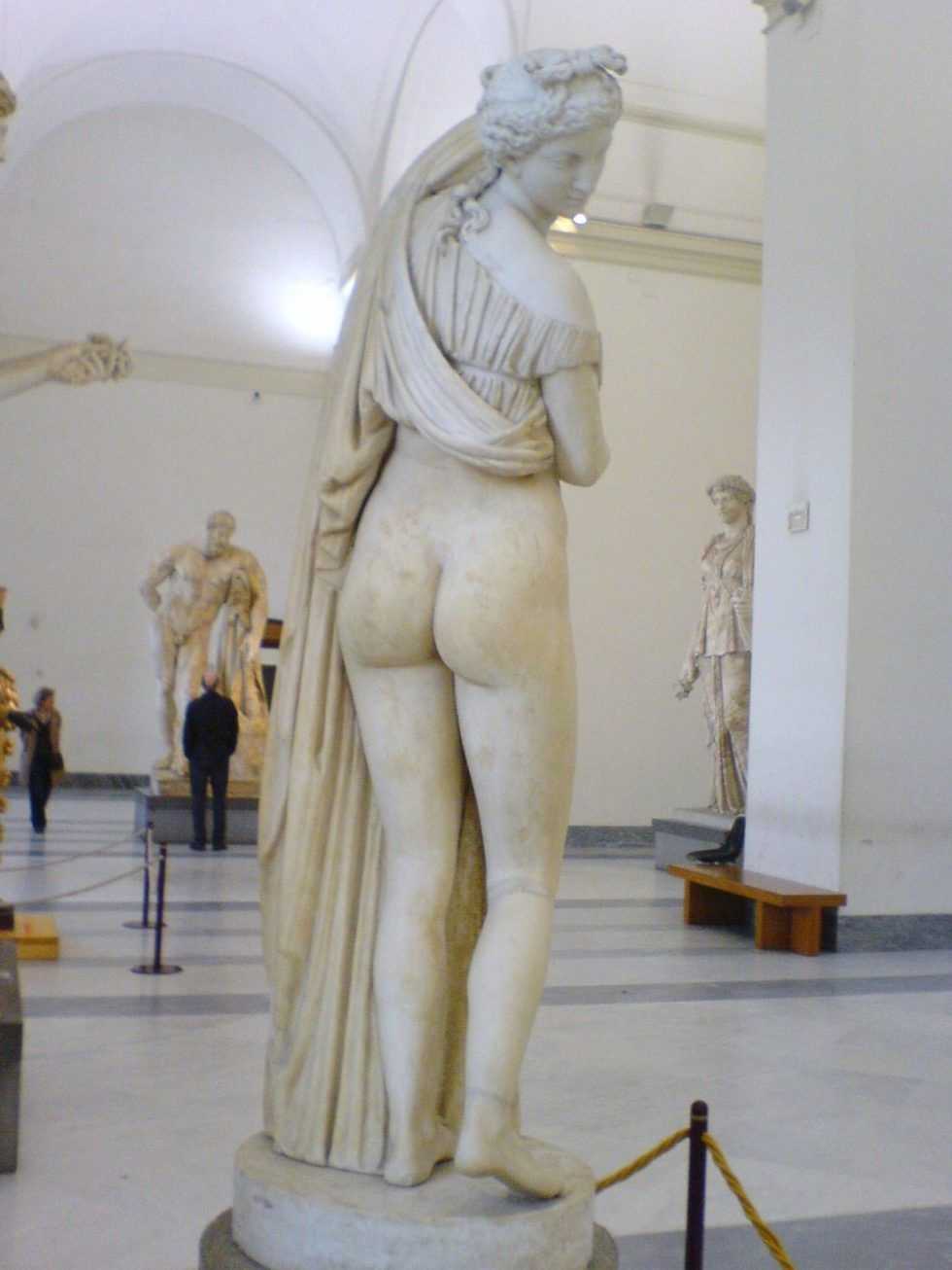 Венера Каллипига — античная мраморная статуя Венеры, найденная в Золотом доме Нерона. Название статуи переводится с древнегреческого (Αφροδίτη Καλλίπυγος) как «Афродита с красивыми ягодицами» или «Венера Прекраснозадая».Одна франкфуртская рукопись XV века сохранила следующую серенаду, которую влюбленный поет в честь своей красавицы: «Она подобна светлому дню. Никто не в состоянии достойным образом воспеть ей хвалу. У нее розовые уста, прекрасные щечки, золотистые волосы, ясные глаза, белые, как слоновая кость, зубы, маленькие круглые груди, длинные изящные бедра, узкие белые пальцы, не очень широкие ноги» и т. д.— Эдуард Фукс