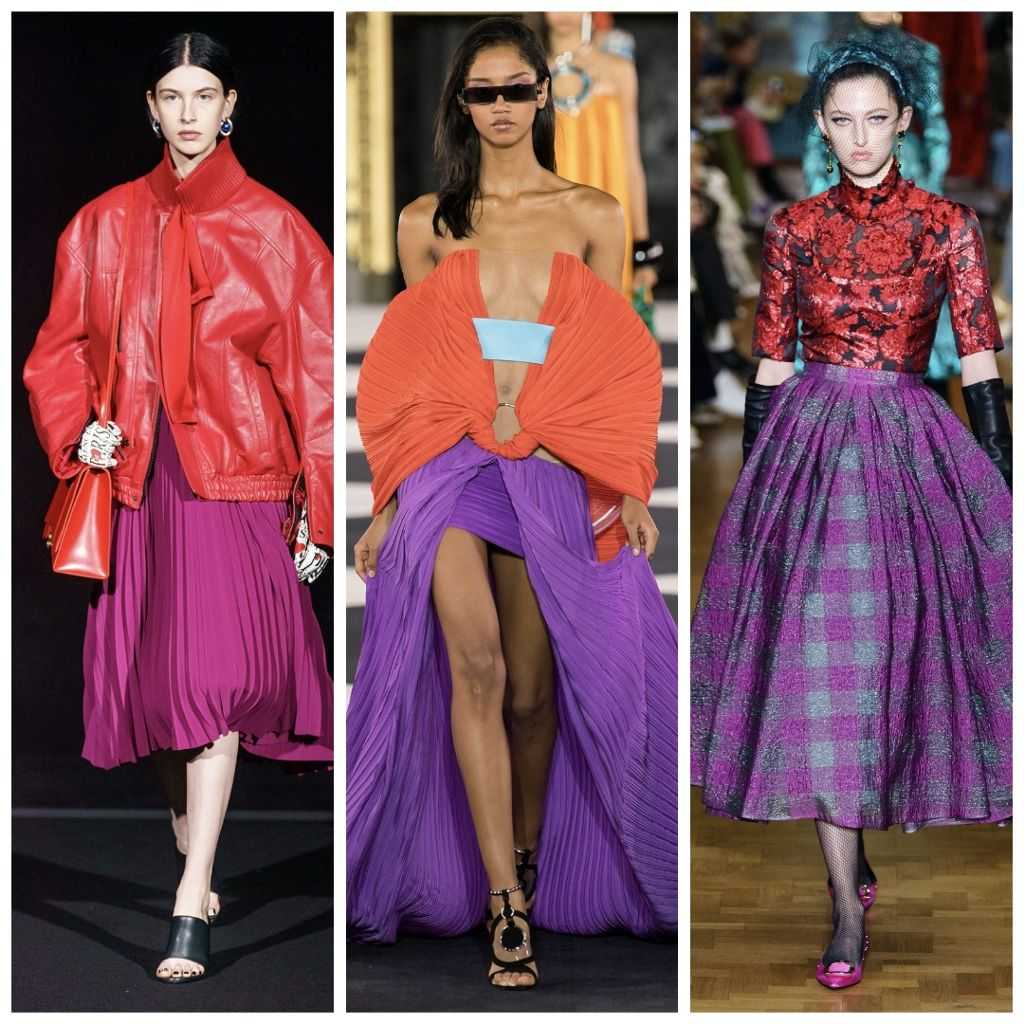 Смелые и сочные образы рождаются при сочетании одежды в фиолетовых и красных оттенках. Они могут показаться фантасмагорическими и даже чересчур претенциозными, поэтому дуэт красного и фиолетового встречается не так часто. Но это очень трепетное и запоминающееся сочетание.