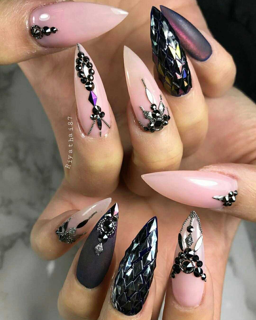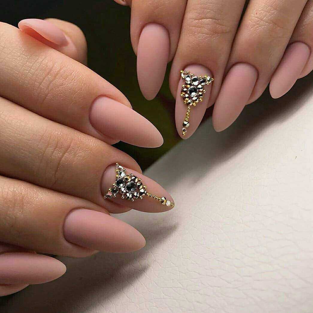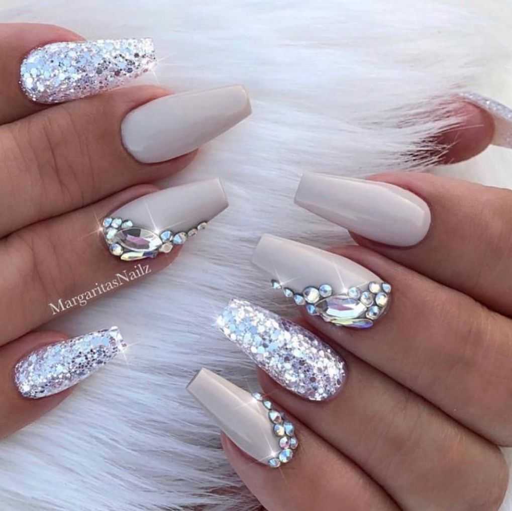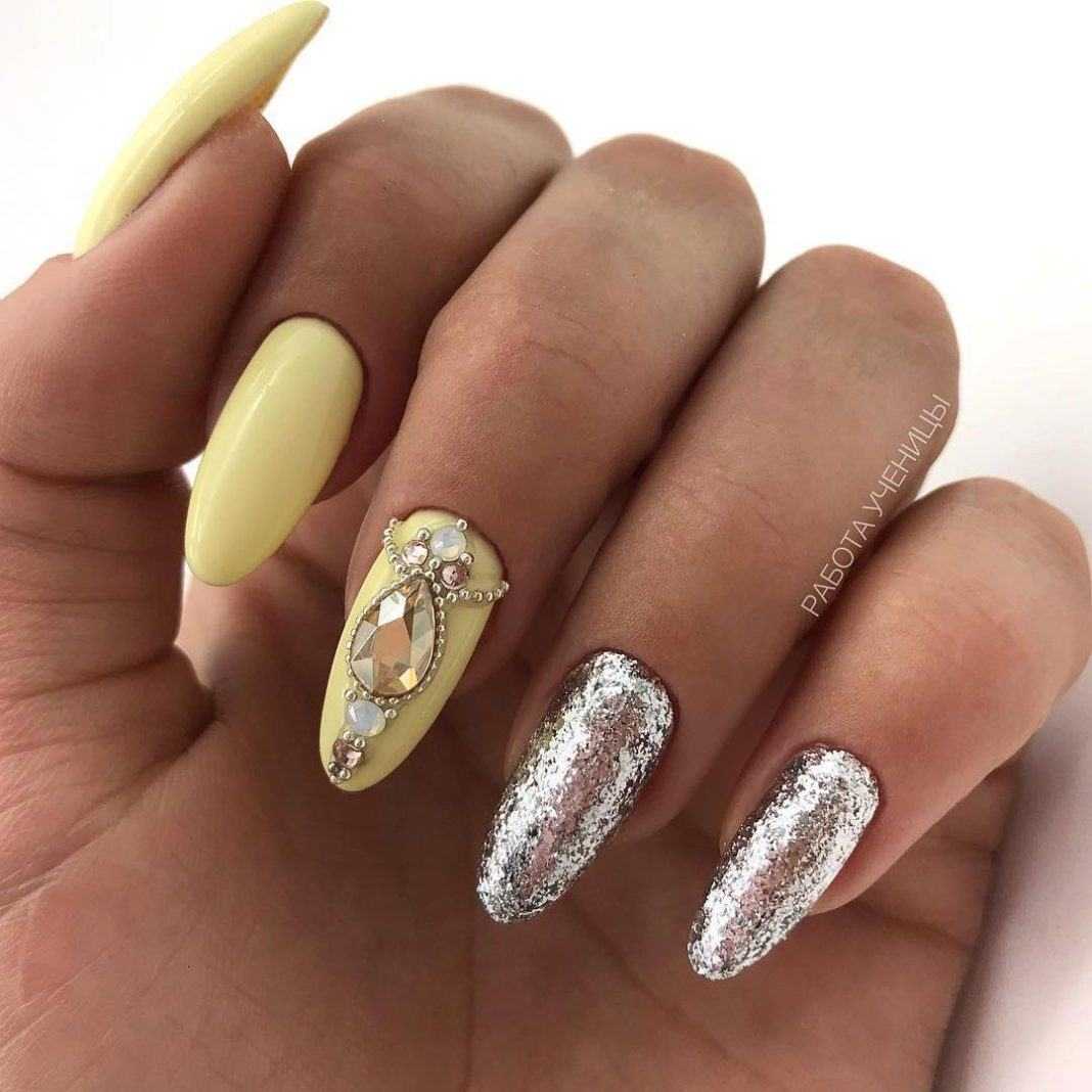 Помимо блесток используйте новинку в нейл-дизайне – втирку, фольгу, технику «битое стекло». Стразы также можно отнести к блестящему декору, настолько красиво и нежно они переливаются на ноготках.