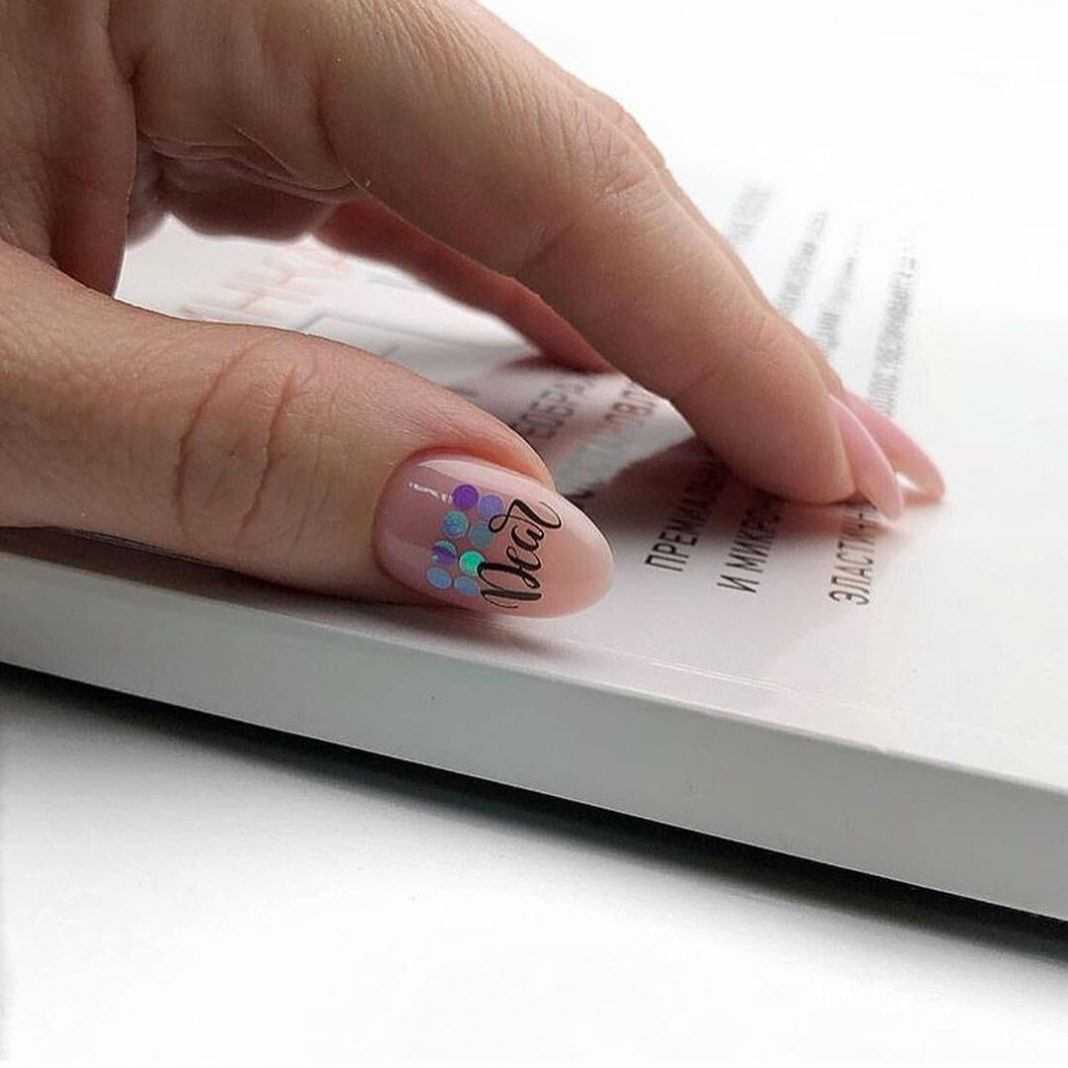 Огромной популярность пользуются фразы на русском языке. Содержание слов может быть любым: от признаний в любви и ваших с любимым человеком инициалов до самомотивирующих слоганов. Изобразить надписи на ногтях можно как с помощью кисти, так и слайдерами. Наклейки очень выручают обладательниц коротких ноготков, есть возможность сразу «примерить» узор и понять поместиться он на ноготке или нет.