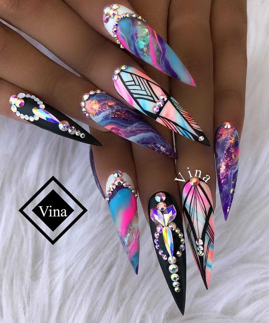#2 Гламурный маникюр «Eye see you» на длинных ногтях