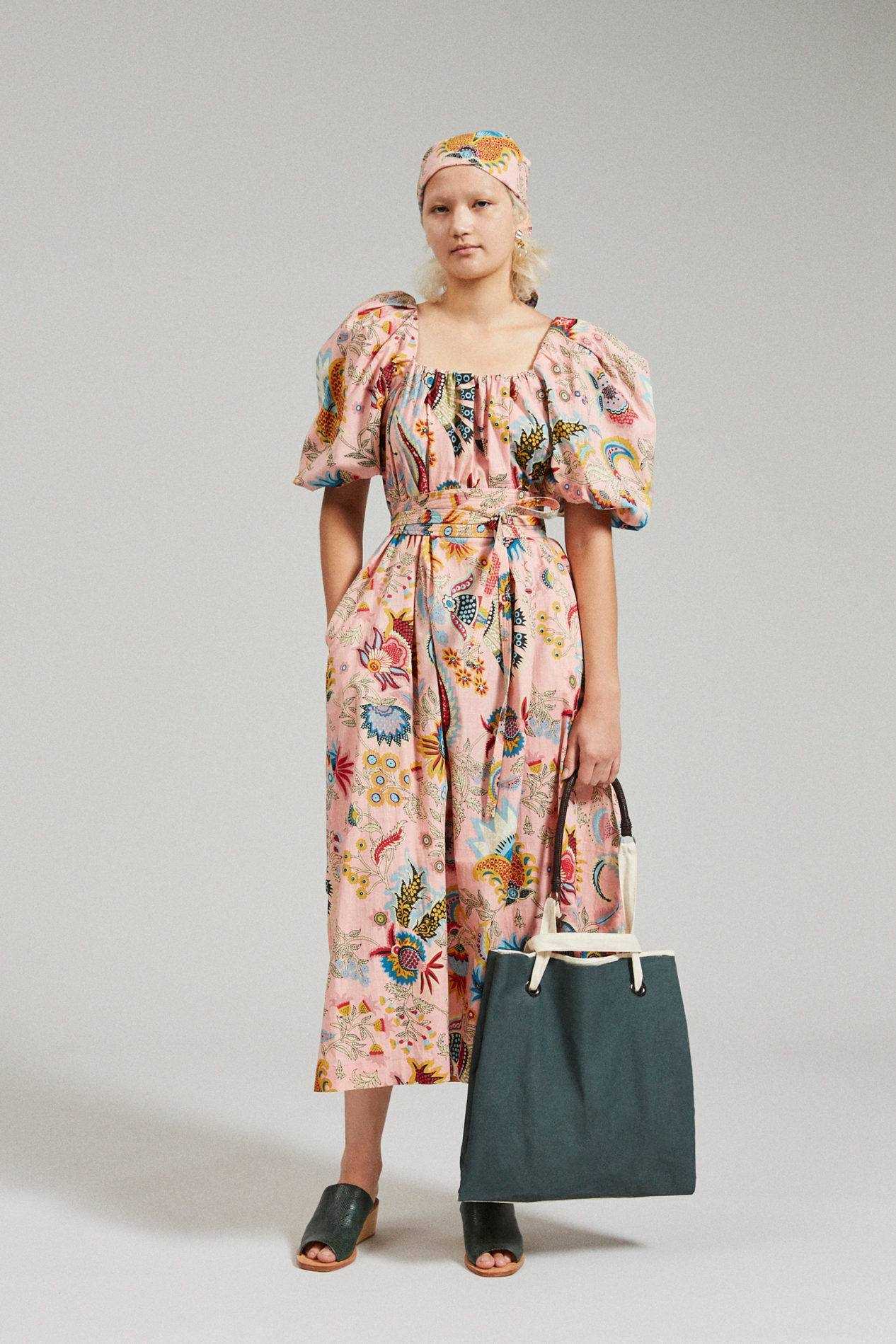Из более повседневных вариантов нам понравились длинные, плавные сарафаны от Collina Strada, которые были покрыты веселыми принтами и носились разнообразными моделями.