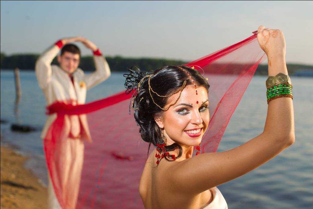 От всего многообразия красок свадебные фото получатся насыщенными и жизнерадостными. А гости с удовольствием хоть на денек окунутся в загадочный мир Индии.