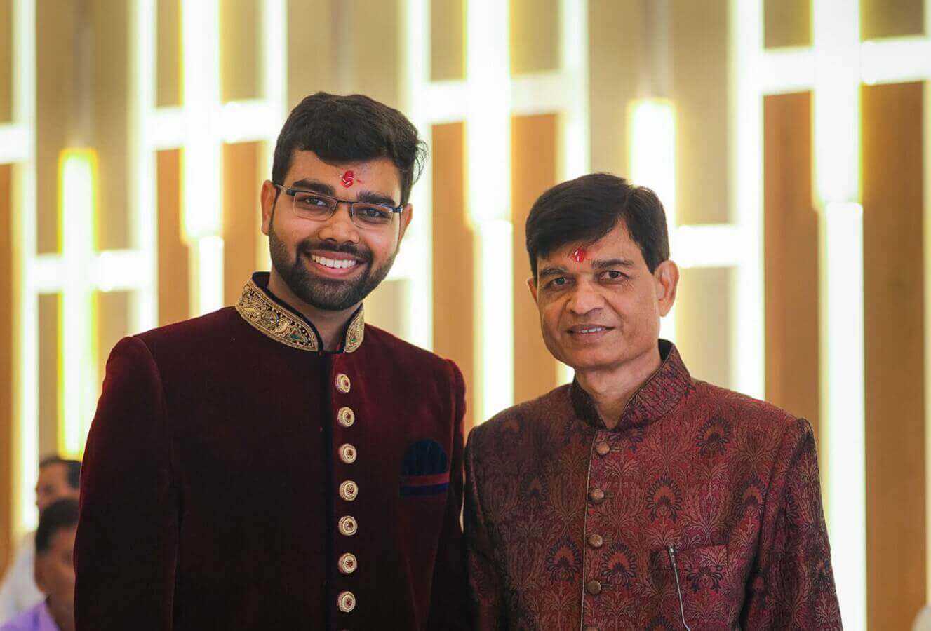 Одеяния для торжественного повода жениха выглядят не менее изящно и красиво, чем платье невесты. Удлиненный, с вышивкой нарядный сюртук шервани он одевает с узкими в тон штанами чириданами. Туфли джути расшивают бисером обычно они с поднятыми вверх носами. Тюрбан пагди тоже особого кроя, он может украшаться подвесками из цветов и бусин.