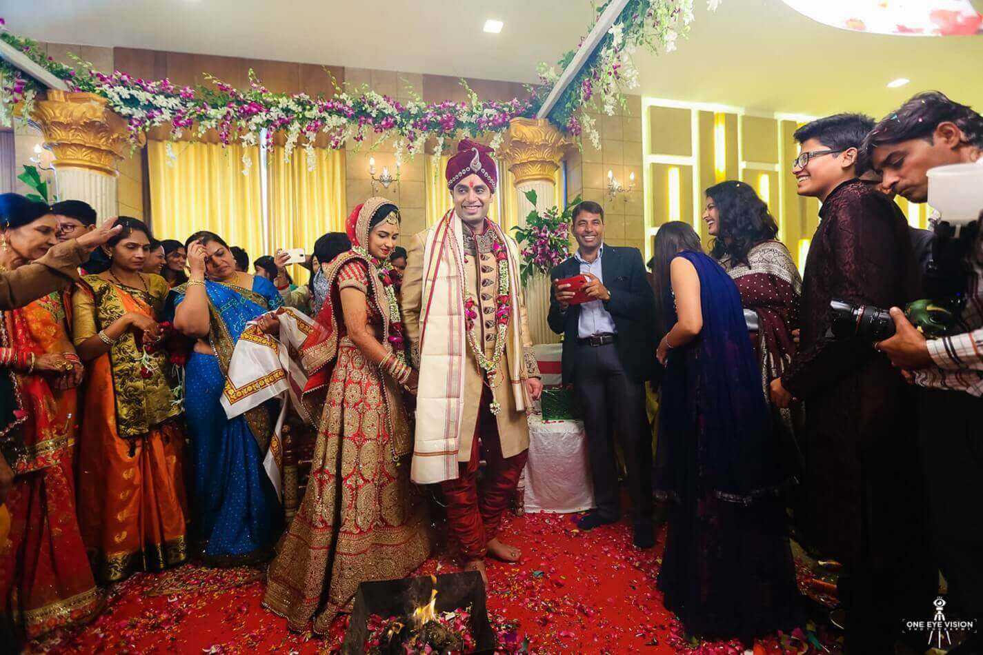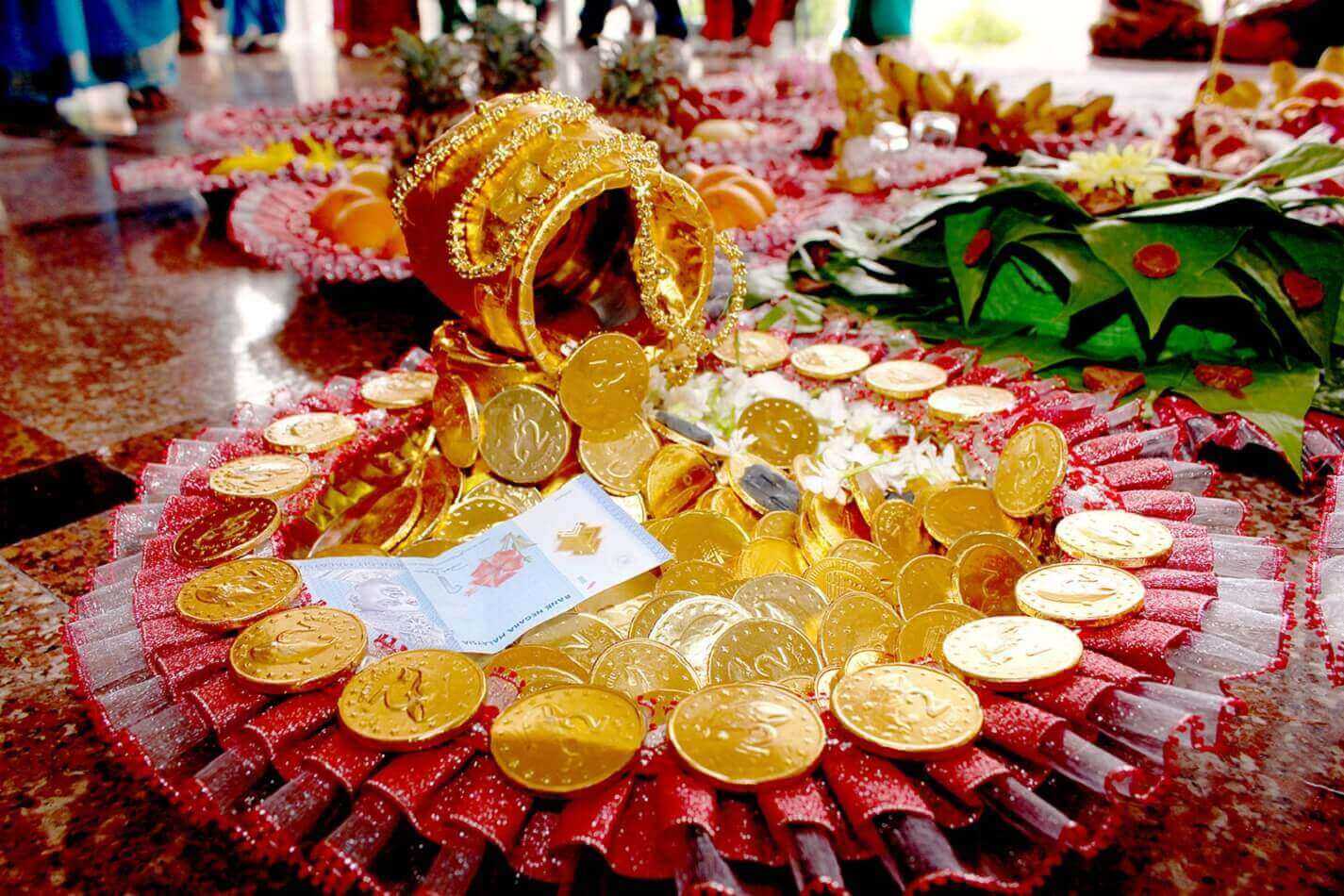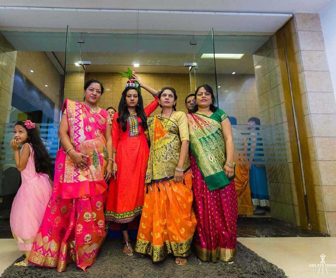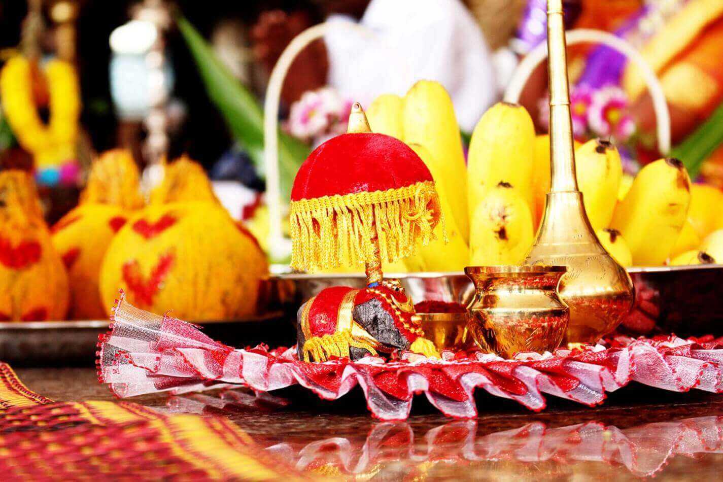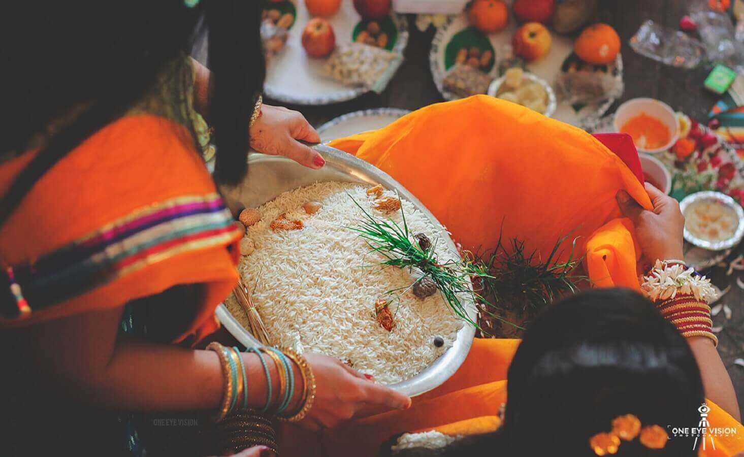 Согласно традиции индуизма каждая церемония начинается с получения благословения у бога Ганаши, который устраняет все препятствия и наделяет молодых мудростью и знаниями. Поэтому жених выполняет поклонения богу в отведенном для этого месте храма, а невеста в своей спальне просит долгой и счастливой супружеской жизни у богини Говры.