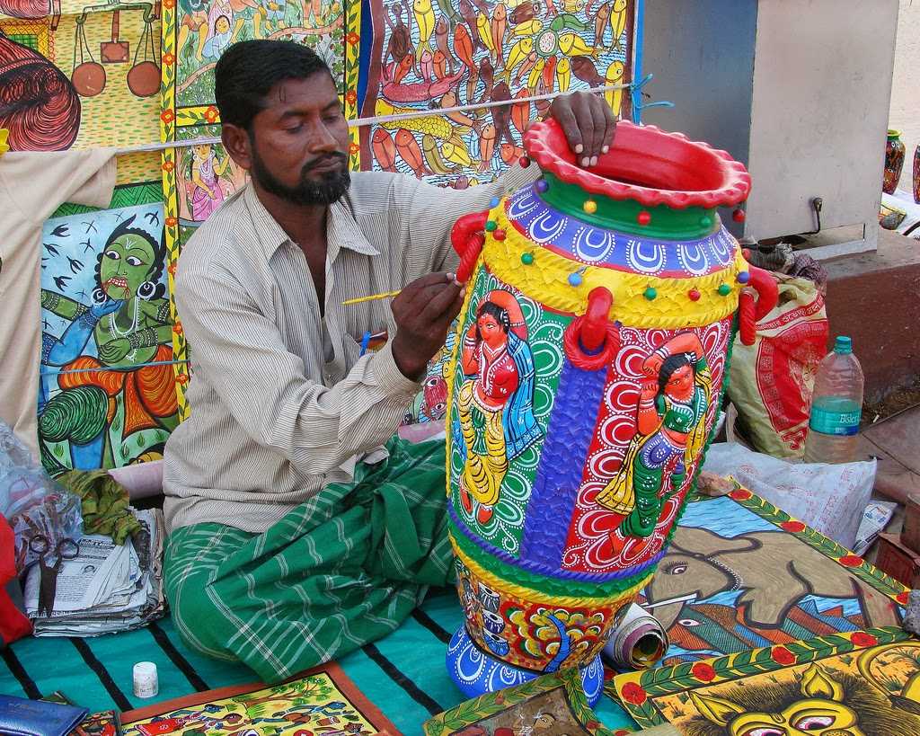 Хотя процесс обработки и изготовления украшений из металла в наши дни уже наполовину механизирован, гравировку все еще делают вручную. Тарелки, кувшины, чаши, шкатулки и кофейные горшки гравируются при помощи шаблонов с цветами и геометрическими фигурами, а затем покрываются ярким лаком или овощной смолой. Узоры чаще всего представляют собой изображения сцен из Индуистских священных писаний а также рисунки, напоминающие по стилю расписные миниатюры Моголов.