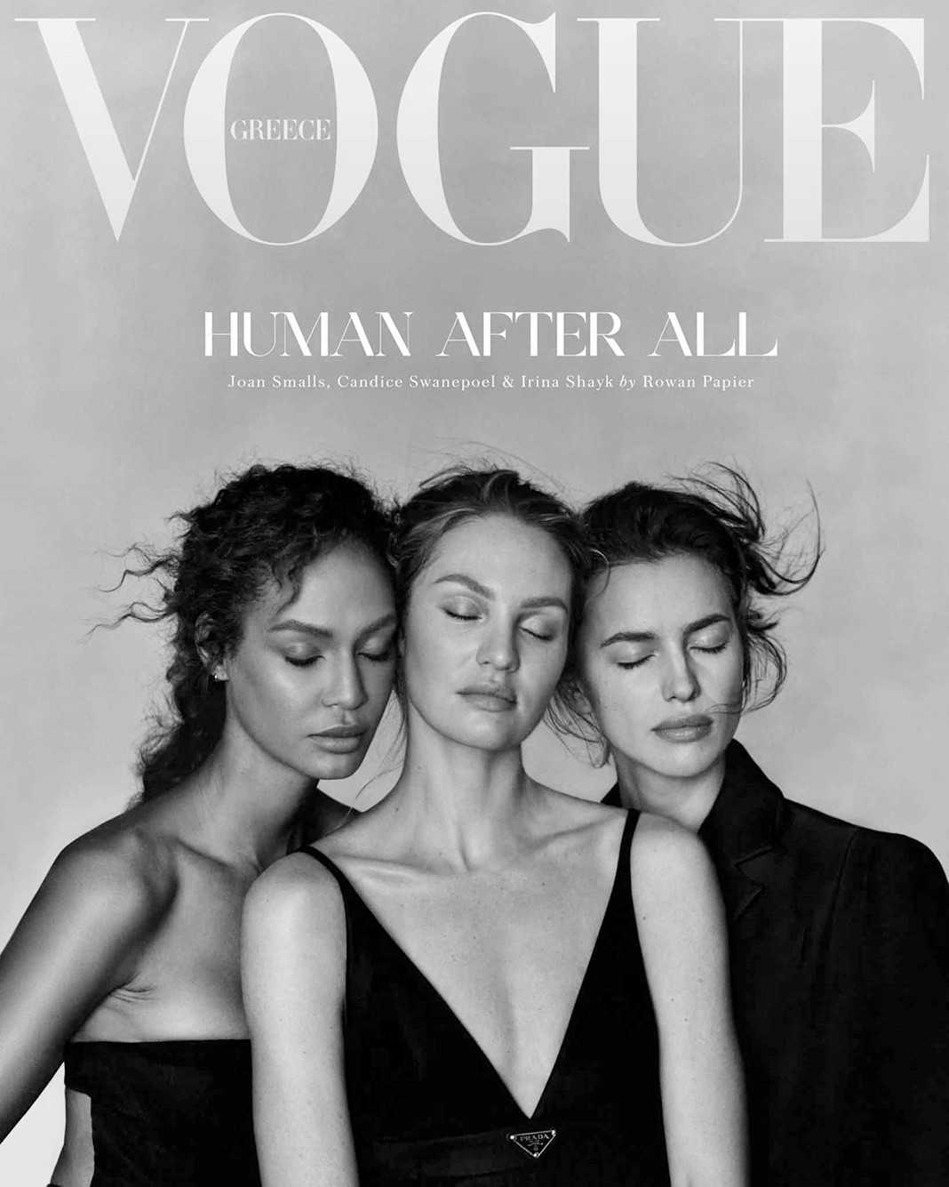 Джоан Смоллс, Кэндис Свейнпол, Ирина Шейк на обложке журнала Vogue Greece, декабрь 2020 г.