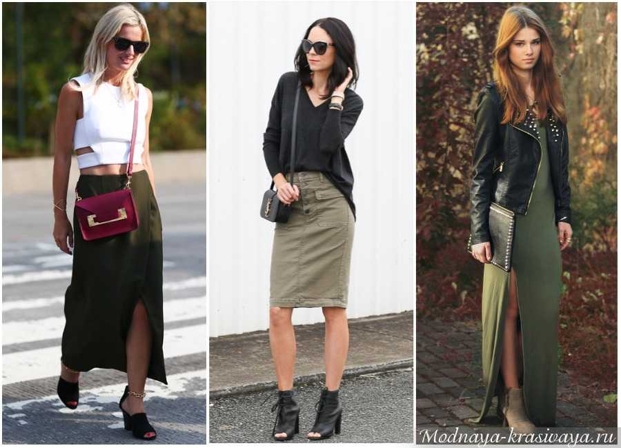 Фасоны юбок – прямая, карандаш, трапеция. Как правило, они довольно плотно облегают бедра, по длине доходят до колена или чуть ниже. Мини и макси не приветствуются. Такая юбка хорошо сочетается с рубашкой-милитари – это накладные карманы, мелкие блестящие пуговицы, строгий ворот, длинный рукав, прямой силуэт.