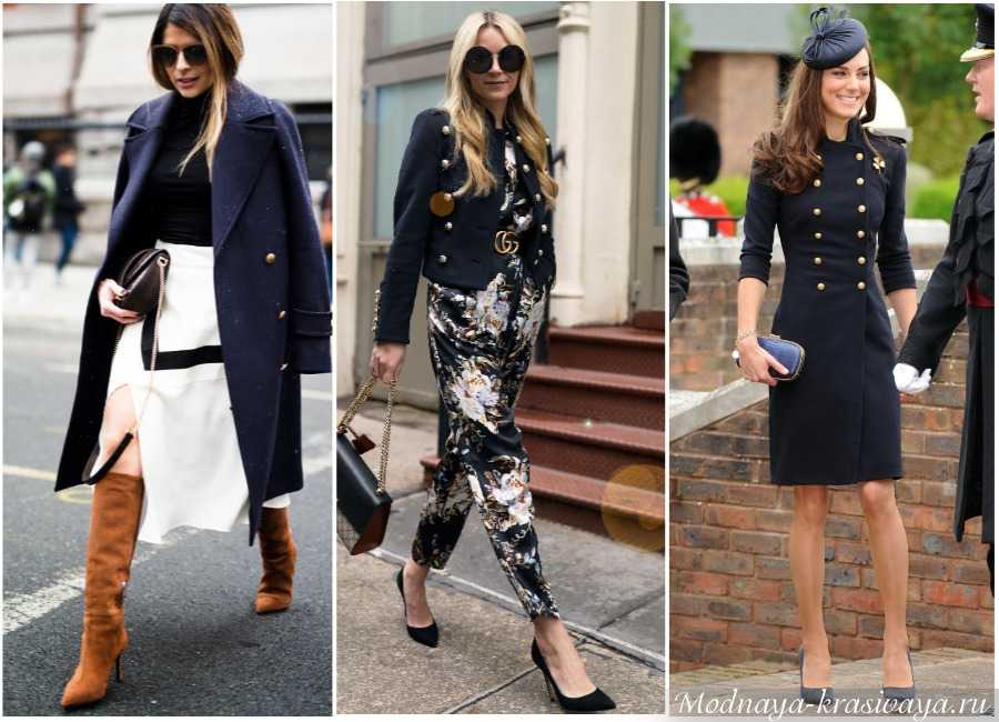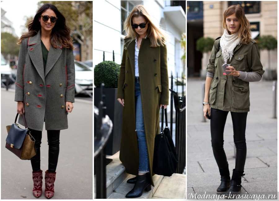 Посмотрите на фото, стиль «милитари» в одежде выглядит строго, но элегантно: