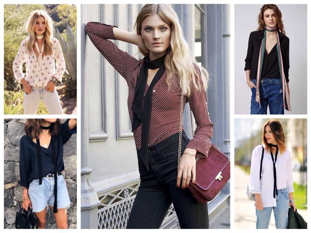 Если круглая горловина и отсутствие воротника являются изюминкой вашего образа, а использовать стильный шарф уж очень хочется, выбирайте тонкий платок и повязывайте его плотно вокруг шеи, перебросив концы за спину.